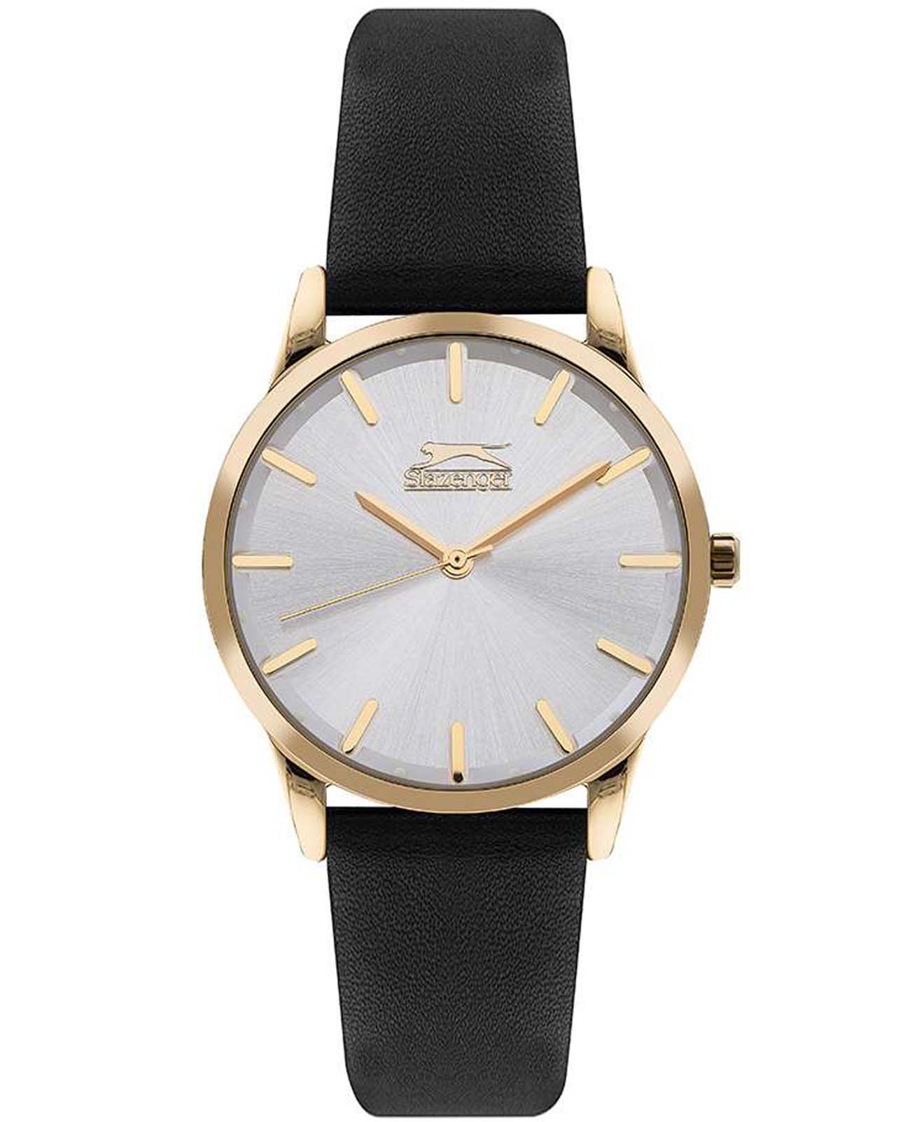 Женские наручные часы Slazenger SL.09.2068.3.05 сочетают в себе классический дизайн и надежность современных технологий. Модель обладает круглым корпусом диаметром 36 мм, изготовленным из суперметалла с золотистым IP-покрытиемIP-покрытиеМетод ионного напыления. Демонстрирует повышенную устойчивость к истиранию, окислению и химическим веществам. Под воздействием высокого давления и температуры около 1500°C молекулы металла надёжно соединяются с частицами корпуса часов., что обеспечивает высокую устойчивость к внешним воздействиям. Циферблат покрыт минеральным стекломМинеральное стеклоМинеральное стекло представляет собой искусственно выращенный минерал кварца. Такое стекло отличается особой устойчивостью к повреждениям и царапинам. Уступает по некоторым качествам сапфировому стеклу., обеспечивающим прочную защиту от царапин. Часы работают на японском кварцевом механизме, что гарантирует точное время без необходимости подзаводки. Водонепроницаемость часов достигает 5 атмосфер (50 метров), что позволяет использовать их при легком контакте с водой, например, во время мытья рук, но не рекомендуется для плавания. Браслет выполнен из натуральной кожи черного цвета с классической застежкой, гарантирующей комфортное ношение.