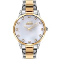 Женские наручные часы Slazenger SL.09.2071.3.07 сочетают в себе элегантный дизайн и практичность современных технологий. Модель обладает круглым корпусом диаметром 32 мм, изготовленным из стали, что обеспечивает высокую устойчивость к внешним воздействиям. Браслет выполнен из суперметалла с частичным IP-покрытиемIP-покрытиеМетод ионного напыления. Демонстрирует повышенную устойчивость к истиранию, окислению и химическим веществам. Под воздействием высокого давления и температуры около 1500°C молекулы металла надёжно соединяются с частицами корпуса часов., добавляя модели особую изысканность. Для защиты используется минеральное стеклоМинеральное стеклоМинеральное стекло представляет собой искусственно выращенный минерал кварца. Такое стекло отличается особой устойчивостью к повреждениям и царапинам. Уступает по некоторым качествам сапфировому стеклу., обеспечивающее прочную защиту от царапин. БезельБезельВнешний ободок, закрепляющий стекло. В спортивных часах так называется поворотное кольцо с делениями на циферблате, выполняет роль таймера – замеряет отрезки времени на шкале. Неподвижный безель – элемент декора. Однонаправленно вращающийся безель на дайверских часах позволяет фиксировать моменты погружения и выныривания на поверхность. с IP-покрытиемIP-покрытиеМетод ионного напыления. Демонстрирует повышенную устойчивость к истиранию, окислению и химическим веществам. Под воздействием высокого давления и температуры около 1500°C молекулы металла надёжно соединяются с частицами корпуса часов.. Часы работают на японском кварцевом механизме, гарантирующем точное время без необходимости подзаводки. Водонепроницаемость часов достигает 3 атмосфер (30 метров), что позволяет использовать их при контакте с брызгами воды, однако не рекомендуется для плавания или дайвинга. Вес часов составляет 76 грамм, делая их удобными для повседневного использования.