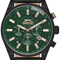 Мужские часы Slazenger SL.09.2096.2.04 — это воплощение элегантности и надежности, идеальные для современного мужчины. Зеленый циферблат, обрамленный черным корпусом и таким же безелемБезельВнешний ободок, закрепляющий стекло. В спортивных часах так называется поворотное кольцо с делениями на циферблате, выполняет роль таймера – замеряет отрезки времени на шкале. Неподвижный безель – элемент декора. Однонаправленно вращающийся безель на дайверских часах позволяет фиксировать моменты погружения и выныривания на поверхность. из суперметалла с IP-покрытиемIP-покрытиеМетод ионного напыления. Демонстрирует повышенную устойчивость к истиранию, окислению и химическим веществам. Под воздействием высокого давления и температуры около 1500°C молекулы металла надёжно соединяются с частицами корпуса часов., привлекает внимание своим современным дизайном. Кварцевый механизм гарантирует безупречную точность. Черный кожаный браслет с комфортной посадкой подчеркивает классический стиль и добавляет изысканности. Минеральное стеклоМинеральное стеклоМинеральное стекло представляет собой искусственно выращенный минерал кварца. Такое стекло отличается особой устойчивостью к повреждениям и царапинам. Уступает по некоторым качествам сапфировому стеклу. защищает часы от повреждений, а люминесцентное покрытиеЛюминесцентное покрытиеПозволяет считывать показания времени в темноте. Производители наносят на стрелки, часовые индексы, безель или поверхность циферблата светонакопительный состав, дающий холодное свечение. на стрелках и метках обеспечивает отличную видимость даже в условиях недостаточного освещения. Эти часы оснащены множеством полезных функций, включая 24-часовой указатель времени, второй часовой поясВторой часовой поясФункция, позволяющая отображать время двух часовых поясов одновременно., индикаторы даты и дня недели, а также тахиметрТахиметрРазмеченная шкала, располагается на ободке или безеле часов. Тахиметр позволяет рассчитать скорость на определённом участке пути, расстояние измеряется в километрах или милях. для измерения скорости. А водозащита до 5 ATM позволяет не беспокоиться о случайных попаданиях воды.