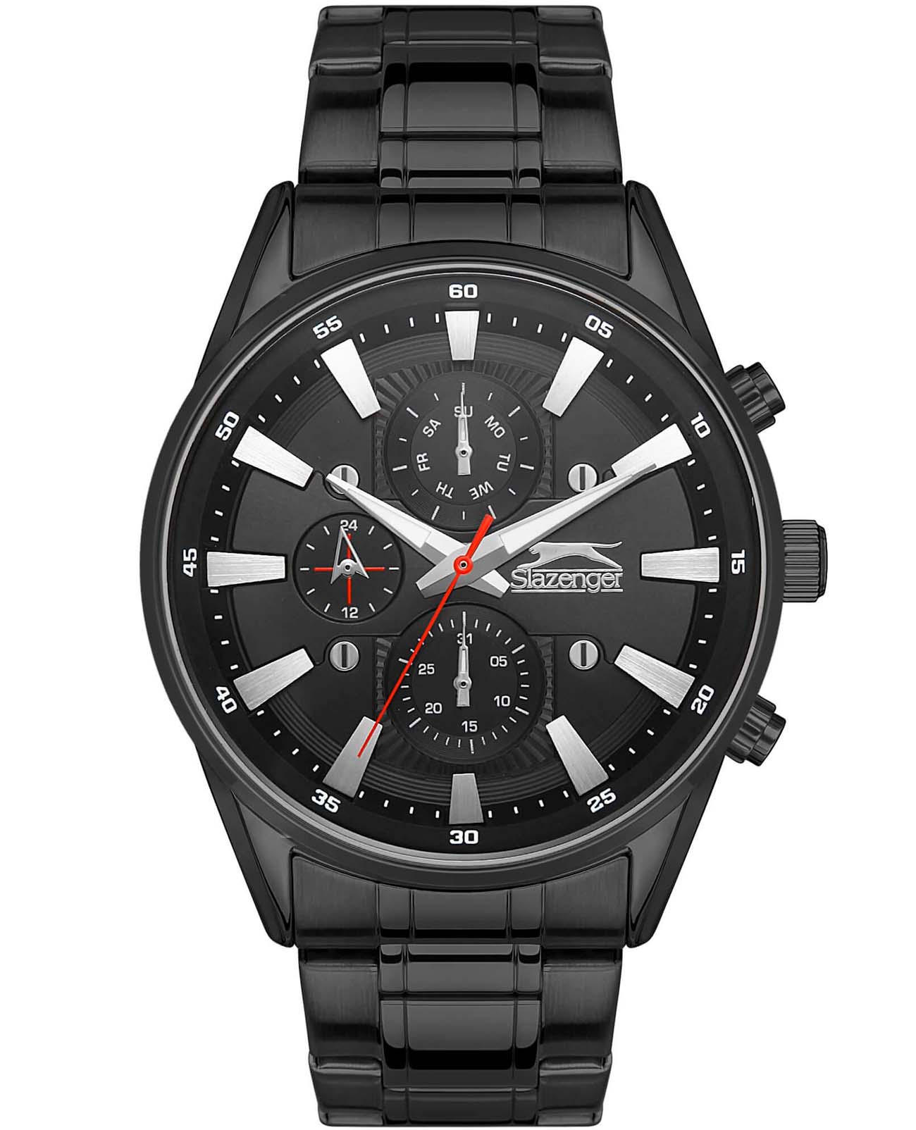 Мужские наручные часы Slazenger SL.09.2118.2.05 — это стильный и функциональный аксессуар, сочетающий в себе классический дизайн и современные технологии. Модель обладает круглым корпусом диаметром 46 мм и браслетом, выполненным из суперметалла с IP-покрытиемIP-покрытиеМетод ионного напыления. Демонстрирует повышенную устойчивость к истиранию, окислению и химическим веществам. Под воздействием высокого давления и температуры около 1500°C молекулы металла надёжно соединяются с частицами корпуса часов., что обеспечивает устойчивость к царапинам и коррозии. Браслет с раскладной застежкойРаскладная застёжкаТакой тип застёжки используется только на браслетах из металла. Она никогда не раскрывается полностью, происходит разделение на 2 и более частей. Раскладывающая застёжка снизит вероятность потери часов к минимуму. гарантирует удобство и надежность при ношении. Циферблат черного цвета украшен стрелками с люминесцентным покрытиемЛюминесцентное покрытиеПозволяет считывать показания времени в темноте. Производители наносят на стрелки, часовые индексы, безель или поверхность циферблата светонакопительный состав, дающий холодное свечение., что позволяет легко определять время даже в условиях слабого освещения. Для защиты циферблата используется минеральное стеклоМинеральное стеклоМинеральное стекло представляет собой искусственно выращенный минерал кварца. Такое стекло отличается особой устойчивостью к повреждениям и царапинам. Уступает по некоторым качествам сапфировому стеклу., устойчивое к царапинам и повреждениям. Часы оснащены кварцевым механизмом, обеспечивающим точность хода с минимальной погрешностью. Модель также включает функции отображения даты, дня недели и 24-часового формата времени, что делает ее практичной для повседневного использования. Водонепроницаемость часов составляет 50 метров (5 ATM), что позволяет использовать их при плавании, но не рекомендуется для дайвинга. Вес модели — 155 грамм, что обеспечивает комфортное ношение. Slazenger SL.09.2118.2.05 — это универсальный аксессуар, который подчеркнет стиль и практичность в любом образе мужчины.