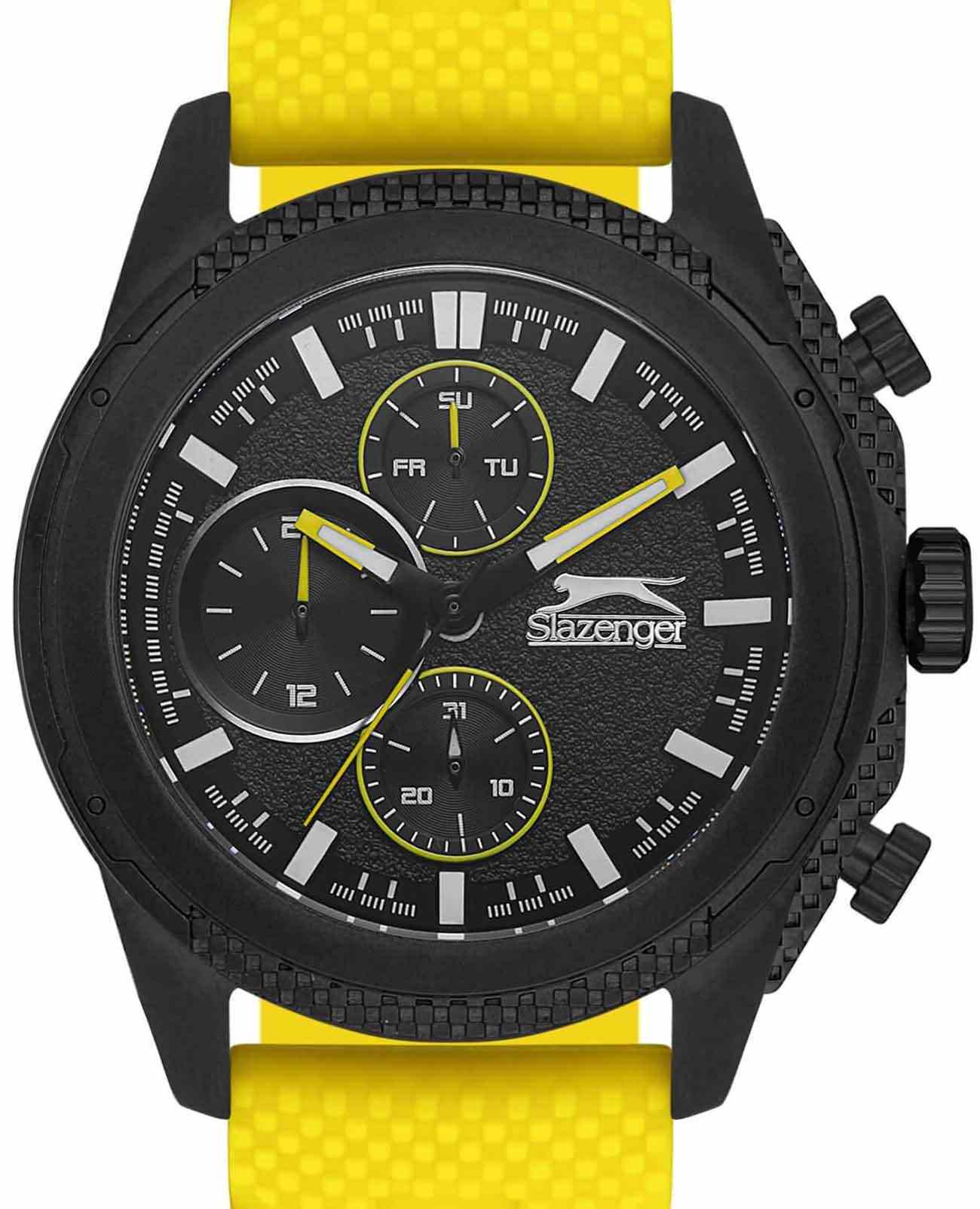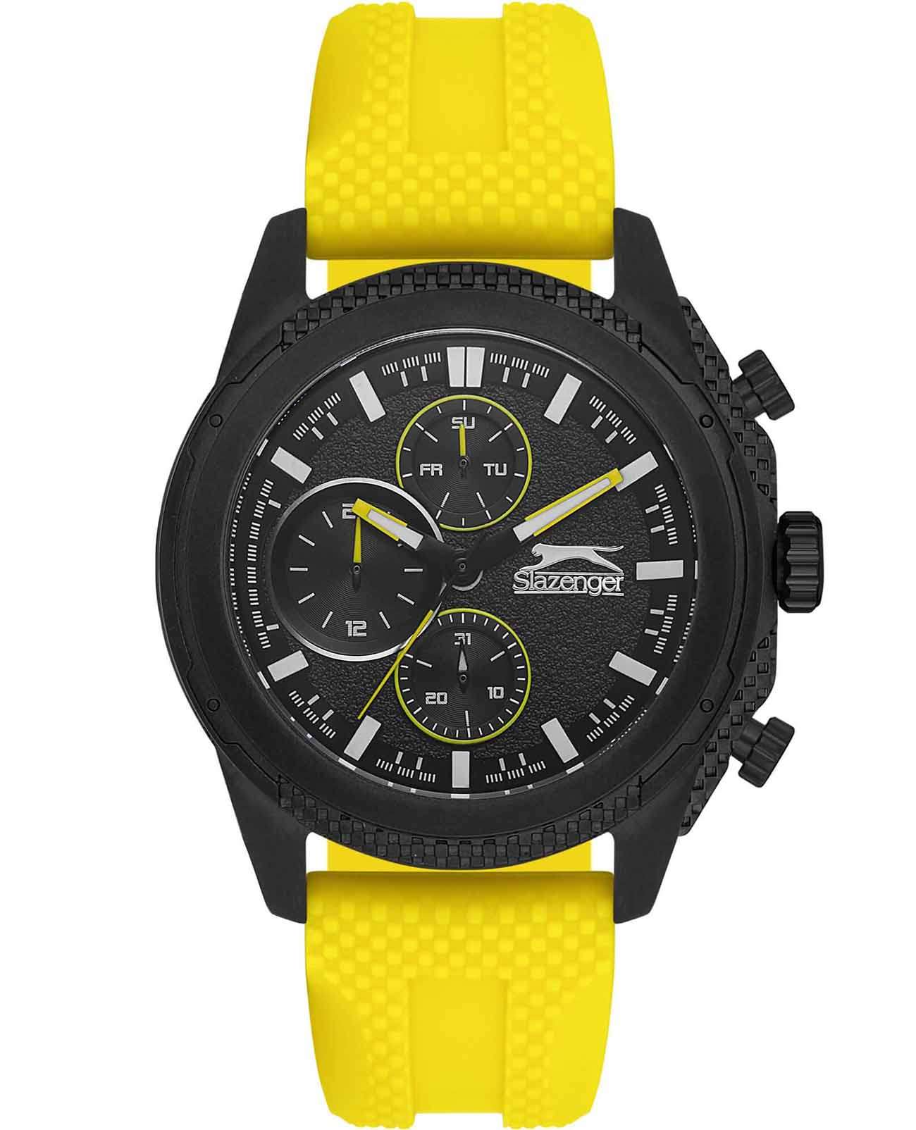 Часы Slazenger SL.09.2153.2.03 представляют собой стильный и функциональный аксессуар для мужчин. Эти кварцевые часы идеально подходят для тех, кто ценит как точность, так и современный дизайн. Корпус из суперметалла придаёт модели прочность и долговечность, а желтый силиконовый ремешок обеспечивает комфортное ношение и отлично сочетается с общим дизайном часов. БезельБезельВнешний ободок, закрепляющий стекло. В спортивных часах так называется поворотное кольцо с делениями на циферблате, выполняет роль таймера – замеряет отрезки времени на шкале. Неподвижный безель – элемент декора. Однонаправленно вращающийся безель на дайверских часах позволяет фиксировать моменты погружения и выныривания на поверхность. часов из суперметалла с черным IP-покрытиемIP-покрытиеМетод ионного напыления. Демонстрирует повышенную устойчивость к истиранию, окислению и химическим веществам. Под воздействием высокого давления и температуры около 1500°C молекулы металла надёжно соединяются с частицами корпуса часов.. Диаметр корпуса составляет 46 мм, а толщина — 12 мм, что делает часы выразительными и заметными на запястье. Минеральное стеклоМинеральное стеклоМинеральное стекло представляет собой искусственно выращенный минерал кварца. Такое стекло отличается особой устойчивостью к повреждениям и царапинам. Уступает по некоторым качествам сапфировому стеклу. защищает циферблат от царапин и повреждений, сохраняя его внешний вид. Часы обладают водозащитой уровня WR 50, что позволяет им выдерживать воздействие воды в повседневных ситуациях. Одной из ключевых особенностей является наличие дополнительных малых циферблатов, которые отображают дату, день недели и текущее время в 24-часовом формате. Все эти функции обеспечивают удобное пользование и позволяют всегда оставаться в курсе времени. Люминесцентное покрытиеЛюминесцентное покрытиеПозволяет считывать показания времени в темноте. Производители наносят на стрелки, часовые индексы, безель или поверхность циферблата светонакопительный состав, дающий холодное свечение. на стрелках обеспечивает отличную видимость в темноте. Ремешок оснащен классической застежкой, что обеспечивает надежную фиксацию на руке. Вес часов составляет 104 грамма, что делает их достаточно легкими для повседневного использования.