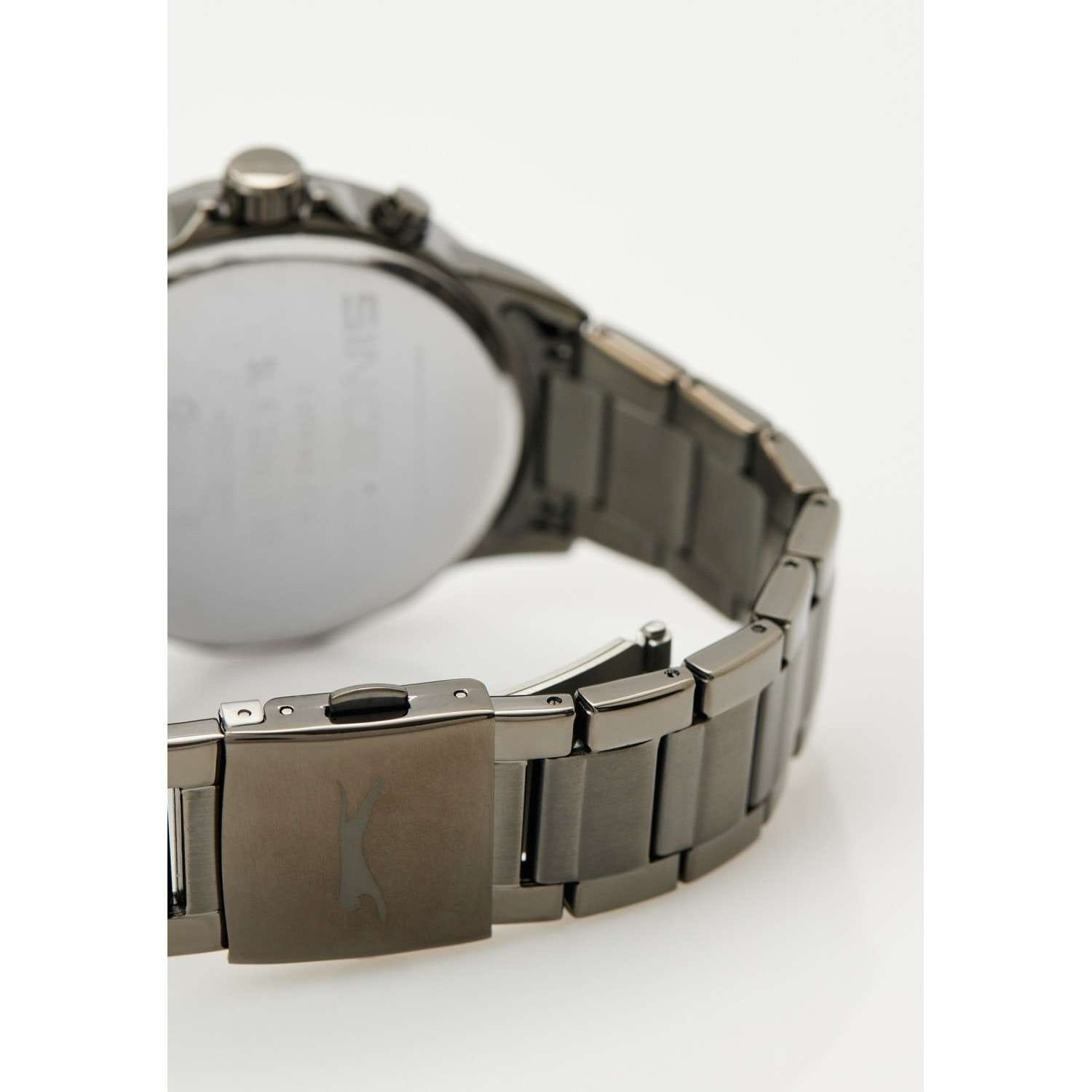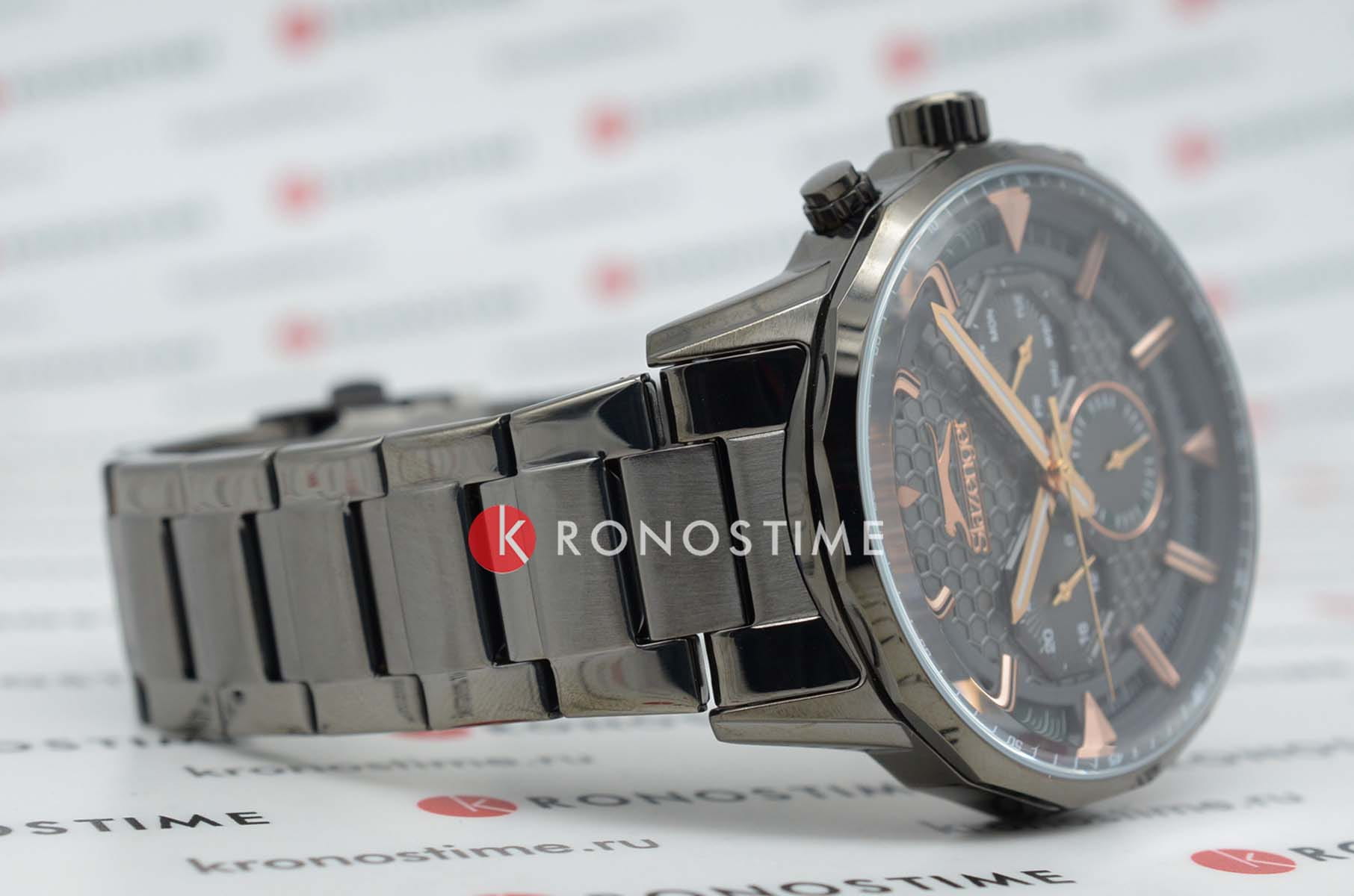 Стильные мужские наручные часы Slazenger SL.09.2216.2.02 станут идеальным аксессуаром для современного мужчины. Этот британский бренд славится своим качеством и надежностью, а данная модель не является исключением. Часы оснащены кварцевым механизмом, что обеспечивает точность хода и долговечность использования. Корпус часов выполнен из металла с черным IP-покрытиемIP-покрытиеМетод ионного напыления. Демонстрирует повышенную устойчивость к истиранию, окислению и химическим веществам. Под воздействием высокого давления и температуры около 1500°C молекулы металла надёжно соединяются с частицами корпуса часов., а прочное минеральное стеклоМинеральное стеклоМинеральное стекло представляет собой искусственно выращенный минерал кварца. Такое стекло отличается особой устойчивостью к повреждениям и царапинам. Уступает по некоторым качествам сапфировому стеклу. защищает циферблат от царапин и повреждений. Элегантный металлический браслет черного цвета снабжен удобной раскладной застёжкойРаскладная застёжкаТакой тип застёжки используется только на браслетах из металла. Она никогда не раскрывается полностью, происходит разделение на 2 и более частей. Раскладывающая застёжка снизит вероятность потери часов к минимуму., что гарантирует комфортное ношение на запястье. Ширина браслета составляет 22 мм, что придает часам солидный вид. Диаметр корпуса равен 45 мм, а толщина 12 мм, что делает эту модель заметной, но в то же время не громоздкой. Водозащита уровня WR 50 позволяет использовать часы в повседневной жизни, не беспокоясь о случайных попаданиях воды. Стрелки снабжены люминесцентным покрытиемЛюминесцентное покрытиеПозволяет считывать показания времени в темноте. Производители наносят на стрелки, часовые индексы, безель или поверхность циферблата светонакопительный состав, дающий холодное свечение., что позволяет легко считывать время в темноте. Функциональные возможности часов включают отображение даты, дня недели и времени в 24-часовом формате на дополнительных малых циферблатах. Это делает модель не только стильной, но и практичной в использовании.