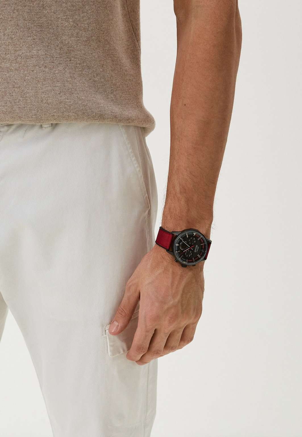 Стильные мужские наручные часы Slazenger SL.09.2217.2.05 станут идеальным аксессуаром для современного мужчины. Этот британский бренд славится своим качеством и надежностью, а данная модель не является исключением. Часы оснащены кварцевым механизмом, что обеспечивает точность хода и долговечность использования. Корпус часов выполнен из металла с черным IP-покрытиемIP-покрытиеМетод ионного напыления. Демонстрирует повышенную устойчивость к истиранию, окислению и химическим веществам. Под воздействием высокого давления и температуры около 1500°C молекулы металла надёжно соединяются с частицами корпуса часов., а прочное минеральное стеклоМинеральное стеклоМинеральное стекло представляет собой искусственно выращенный минерал кварца. Такое стекло отличается особой устойчивостью к повреждениям и царапинам. Уступает по некоторым качествам сапфировому стеклу. защищает циферблат от царапин и повреждений. Элегантный красный тканевый ремешок на черном силиконовом основании с классической застежкой, что гарантирует комфортное ношение на запястье. Ширина браслета составляет 22 мм, что придает часам солидный вид. Диаметр корпуса равен 45 мм, а толщина 12 мм, что делает эту модель заметной, но в то же время не громоздкой. Водозащита уровня WR 50 позволяет использовать часы в повседневной жизни, не беспокоясь о случайных попаданиях воды. Стрелки снабжены люминесцентным покрытиемЛюминесцентное покрытиеПозволяет считывать показания времени в темноте. Производители наносят на стрелки, часовые индексы, безель или поверхность циферблата светонакопительный состав, дающий холодное свечение., что позволяет легко считывать время в темноте. Функциональные возможности часов включают отображение даты, дня недели и времени в 24-часовом формате на дополнительных малых циферблатах. Это делает модель не только стильной, но и практичной в использовании.