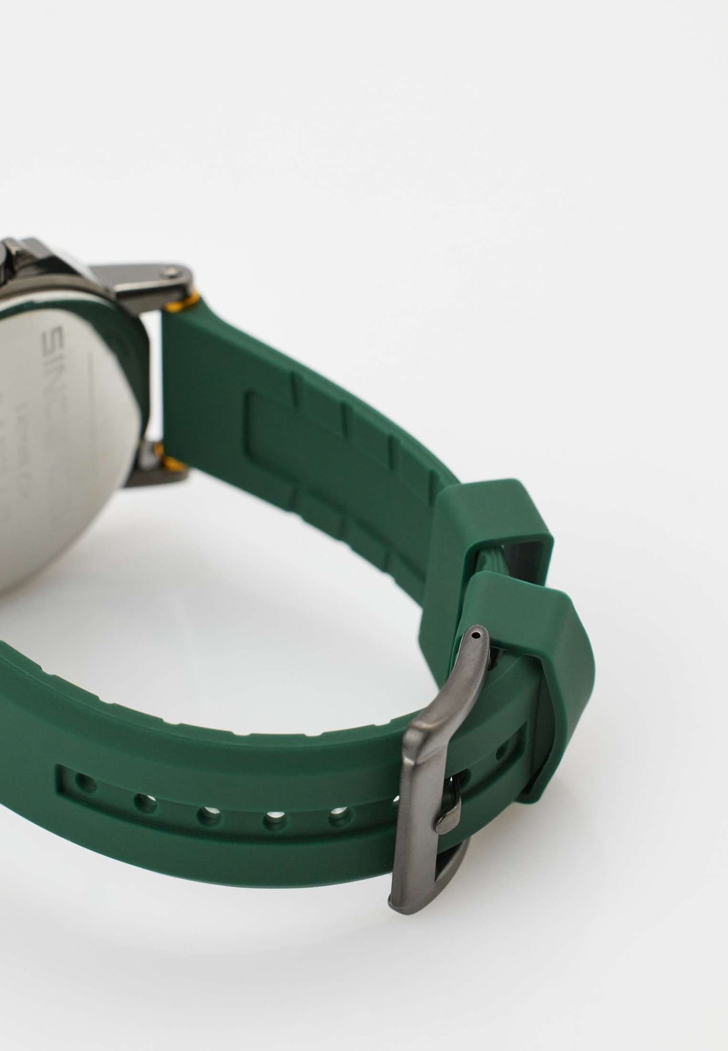 Стильные наручные часы Slazenger SL.09.2220.1.07 сочетают современный дизайн и практичность для повседневного использования. Крупный корпус диаметром 48 мм выполнен из прочного металла IP-покрытиемIP-покрытиеМетод ионного напыления. Демонстрирует повышенную устойчивость к истиранию, окислению и химическим веществам. Под воздействием высокого давления и температуры около 1500°C молекулы металла надёжно соединяются с частицами корпуса часов., а минеральное стеклоМинеральное стеклоМинеральное стекло представляет собой искусственно выращенный минерал кварца. Такое стекло отличается особой устойчивостью к повреждениям и царапинам. Уступает по некоторым качествам сапфировому стеклу. обеспечивает дополнительную защиту темно-зеленого циферблата от царапин. Модель оснащена надежным кварцевым механизмом и имеет водозащиту класса WR 50, что позволяет не снимать часы при мытье рук или во время дождя. Зеленый ремешок из мягкого и долговечного силикона удобно сидит на запястье и фиксируется классической застежкой. Часы весят всего 86 грамм, что делает их комфортными для ежедневной носки. Заводная головка оснащена защитой, что предотвращает случайное повреждение. Эта модель станет надежным и стильным аксессуаром для тех, кто ценит качество и функциональность.