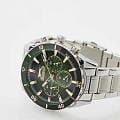 Часы Slazenger SL.09.2236.2.03 — это стильная и надежная модель, которая станет отличным выбором для активного современного мужчины. Крупный корпус диаметром 46 мм выполнен из прочного металла, а серебристый металлический браслет оснащён удобной раскладной застёжкойРаскладная застёжкаТакой тип застёжки используется только на браслетах из металла. Она никогда не раскрывается полностью, происходит разделение на 2 и более частей. Раскладывающая застёжка снизит вероятность потери часов к минимуму., что обеспечивает комфорт при повседневном ношении. На безельБезельВнешний ободок, закрепляющий стекло. В спортивных часах так называется поворотное кольцо с делениями на циферблате, выполняет роль таймера – замеряет отрезки времени на шкале. Неподвижный безель – элемент декора. Однонаправленно вращающийся безель на дайверских часах позволяет фиксировать моменты погружения и выныривания на поверхность. нанесено черное и зеленое IP-покрытиеIP-покрытиеМетод ионного напыления. Демонстрирует повышенную устойчивость к истиранию, окислению и химическим веществам. Под воздействием высокого давления и температуры около 1500°C молекулы металла надёжно соединяются с частицами корпуса часов.. Минеральное стеклоМинеральное стеклоМинеральное стекло представляет собой искусственно выращенный минерал кварца. Такое стекло отличается особой устойчивостью к повреждениям и царапинам. Уступает по некоторым качествам сапфировому стеклу. защищает текстурированный зеленый циферблат от случайных царапин, а водозащита уровня WR 50 позволяет не переживать о попадании влаги при контакте с водой. На циферблате расположены дополнительные малые циферблаты с отображением даты, дня недели и времени в 24-часовом формате, что делает использование часов максимально функциональным. Для удобства использования в темное время суток предусмотрено люминесцентное покрытиеЛюминесцентное покрытиеПозволяет считывать показания времени в темноте. Производители наносят на стрелки, часовые индексы, безель или поверхность циферблата светонакопительный состав, дающий холодное свечение. стрелок. Толщина корпуса составляет 13 мм, вес часов — 152 грамма.