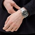 Часы Slazenger SL.09.2242.2.05 – это стильная и надежная модель, созданная для современных мужчин, ценящих качество и функциональность. Корпус и браслет выполнены из прочного металла серебряного цвета, что придает аксессуару элегантный внешний вид и обеспечивает долговечность. Часы фиксируются на руке с помощью браслета с удобной раскладной застёжкойРаскладная застёжкаТакой тип застёжки используется только на браслетах из металла. Она никогда не раскрывается полностью, происходит разделение на 2 и более частей. Раскладывающая застёжка снизит вероятность потери часов к минимуму.. Кварцевый механизм гарантирует точность хода, а минеральное стеклоМинеральное стеклоМинеральное стекло представляет собой искусственно выращенный минерал кварца. Такое стекло отличается особой устойчивостью к повреждениям и царапинам. Уступает по некоторым качествам сапфировому стеклу. защищает зеленый циферблат от царапин и повреждений. Диаметр корпуса составляет 46 мм, толщина – 13 мм, ширина ремешка – 24 мм, а вес часов – 146 грамм, что делает их удобными для повседневного ношения. Водозащита уровня WR 50 позволяет не снимать часы во время мытья рук и при незначительном контакте с водой. Для удобства использования в темное время суток предусмотрено люминесцентное покрытиеЛюминесцентное покрытиеПозволяет считывать показания времени в темноте. Производители наносят на стрелки, часовые индексы, безель или поверхность циферблата светонакопительный состав, дающий холодное свечение. стрелок. Модель оснащена дополнительными циферблатами, отображающими дату, день недели и текущее время в 24-часовом формате.