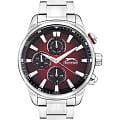 Часы Slazenger SL.09.2272.2.06 – это стильный аксессуар, сочетающий в себе современный дизайн и продуманную функциональность. Модель оснащена точным кварцевым механизмом, который гарантирует стабильную работу и легкость в использовании. Корпус и браслет выполнены из суперметалла — инновационного сплава на основе меди с пониженным содержанием цинка и никеля, обладающего высокой прочностью и устойчивостью к износу благодаря особой технологии покрытия. Элегантный градиентный красно-чёрный циферблат защищён надёжным минеральным стекломМинеральное стеклоМинеральное стекло представляет собой искусственно выращенный минерал кварца. Такое стекло отличается особой устойчивостью к повреждениям и царапинам. Уступает по некоторым качествам сапфировому стеклу., устойчивым к царапинам и повреждениям. На циферблате размещены отдельные индикаторы: 24-часовой указатель времени, а также дополнительные циферблаты для отображения даты и дня недели, что делает модель максимально информативной и удобной в повседневном использовании. Водозащита 5 АТМ (5 бар) надёжно защищает механизм от брызг и дождя, а диаметр корпуса 45 мм и толщина 13 мм обеспечивают солидный внешний вид и комфортную посадку на запястье. Стальной браслет с раскладной застёжкойРаскладная застёжкаТакой тип застёжки используется только на браслетах из металла. Она никогда не раскрывается полностью, происходит разделение на 2 и более частей. Раскладывающая застёжка снизит вероятность потери часов к минимуму. обеспечивает комфортную посадку. Стрелки с люминесцентным покрытиемЛюминесцентное покрытиеПозволяет считывать показания времени в темноте. Производители наносят на стрелки, часовые индексы, безель или поверхность циферблата светонакопительный состав, дающий холодное свечение. удобно подсвечиваются в темноте после зарядки на свету. Часы подойдут как для ежедневного ношения, так и для особых случаев, а универсальный дизайн подчеркнёт индивидуальность и вкус владельца.