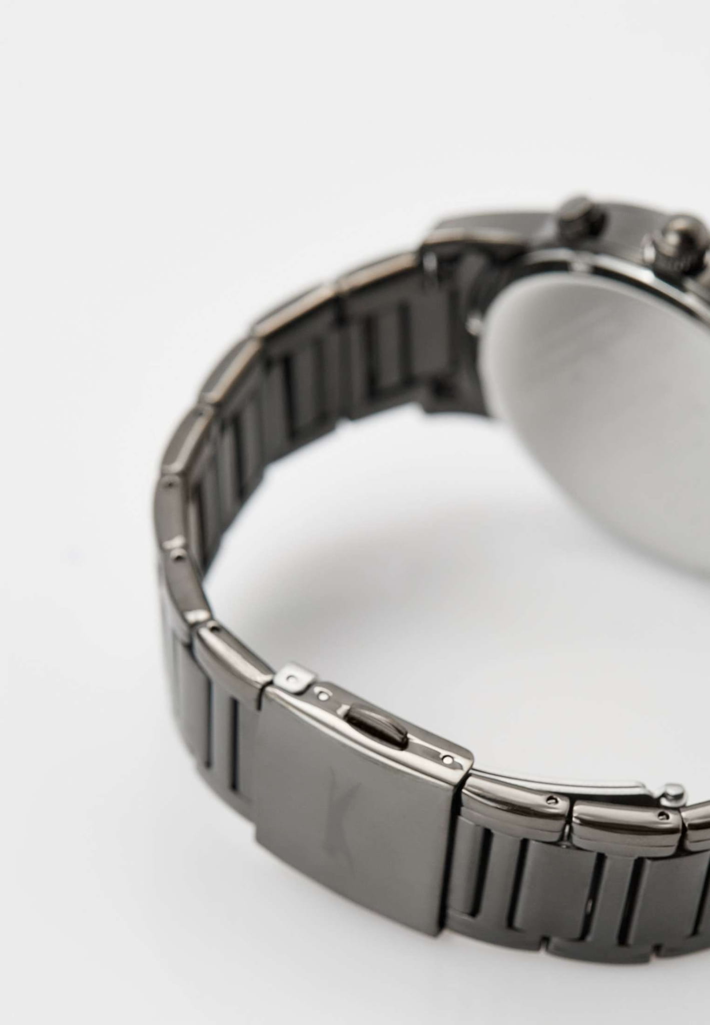 Мужские наручные часы Slazenger SL.09.2294.2.04 сочетают стильный современный дизайн и высокую функциональность. Корпус из прочного металла с черным IP-покрытиемIP-покрытиеМетод ионного напыления. Демонстрирует повышенную устойчивость к истиранию, окислению и химическим веществам. Под воздействием высокого давления и температуры около 1500°C молекулы металла надёжно соединяются с частицами корпуса часов. диаметром 44 мм и толщиной 13 мм защищён минеральным стекломМинеральное стеклоМинеральное стекло представляет собой искусственно выращенный минерал кварца. Такое стекло отличается особой устойчивостью к повреждениям и царапинам. Уступает по некоторым качествам сапфировому стеклу., устойчивым к царапинам. Черный металлический браслет с IP-покрытиемIP-покрытиеМетод ионного напыления. Демонстрирует повышенную устойчивость к истиранию, окислению и химическим веществам. Под воздействием высокого давления и температуры около 1500°C молекулы металла надёжно соединяются с частицами корпуса часов. шириной 22 мм оснащён надёжной раскладной застёжкойРаскладная застёжкаТакой тип застёжки используется только на браслетах из металла. Она никогда не раскрывается полностью, происходит разделение на 2 и более частей. Раскладывающая застёжка снизит вероятность потери часов к минимуму., обеспечивающей комфортное ношение. Кварцевый механизм гарантирует точность хода, а водозащита уровня WR 50 позволяет не снимать часы при мытье рук или во время дождя. Модель оснащена люминесцентным покрытиемЛюминесцентное покрытиеПозволяет считывать показания времени в темноте. Производители наносят на стрелки, часовые индексы, безель или поверхность циферблата светонакопительный состав, дающий холодное свечение. стрелок и меток, что облегчает считывание времени в темноте. На малых циферблатах отображаются дата, день недели и текущее время в 24-часовом формате, что делает модель особенно удобной для повседневного использования. Циферблат часов насыщенного черного цвета. Заводная головка с защитой и завинчивающаяся задняя крышка обеспечивают дополнительную надежность конструкции. Вес часов составляет 123 грамма.