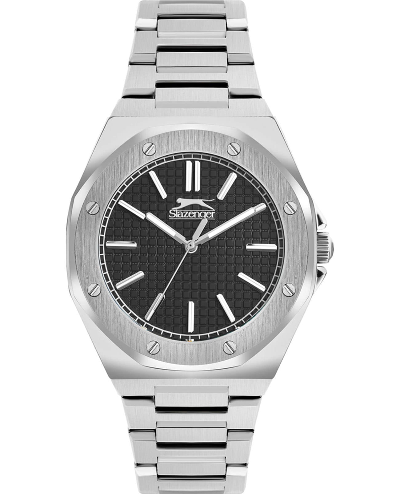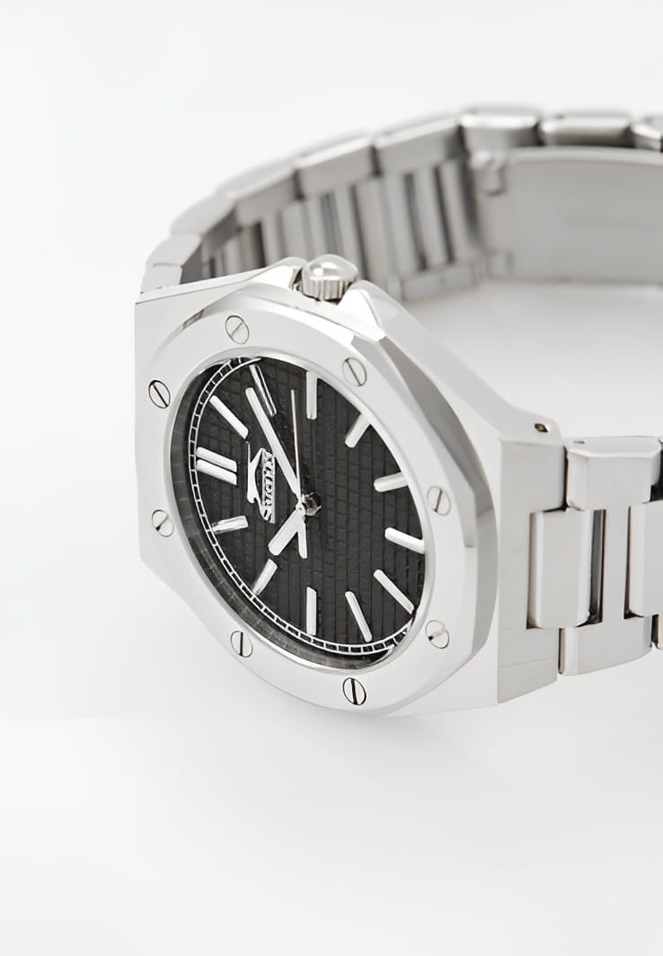 Мужские кварцевые часы Slazenger SL.09.2305.1.01 — это стильный и надёжный аксессуар, сочетающий современный дизайн и прочность. Корпус и браслет выполнены из суперметалла, защищён минеральным стекломМинеральное стеклоМинеральное стекло представляет собой искусственно выращенный минерал кварца. Такое стекло отличается особой устойчивостью к повреждениям и царапинам. Уступает по некоторым качествам сапфировому стеклу.. Циферблат чёрного цвета оформлен в классическом стиле, стрелки оснащены люминесцентным покрытиемЛюминесцентное покрытиеПозволяет считывать показания времени в темноте. Производители наносят на стрелки, часовые индексы, безель или поверхность циферблата светонакопительный состав, дающий холодное свечение., обеспечивающим хорошую читаемость в темноте. Заводная головка снабжена защитой, а задняя крышка — завинчивающаяся, что повышает надёжность конструкции. Браслет из суперметалла фиксируется на раскладной застёжкеРаскладная застёжкаТакой тип застёжки используется только на браслетах из металла. Она никогда не раскрывается полностью, происходит разделение на 2 и более частей. Раскладывающая застёжка снизит вероятность потери часов к минимуму., обеспечивая удобство и безопасность ношения. Водонепроницаемость 50 м позволяет использовать часы в повседневных условиях, защищая от случайных брызг и капель дождя. Модель подчёркивает индивидуальность владельца и идеально подходит как для повседневного, так и для делового образа.