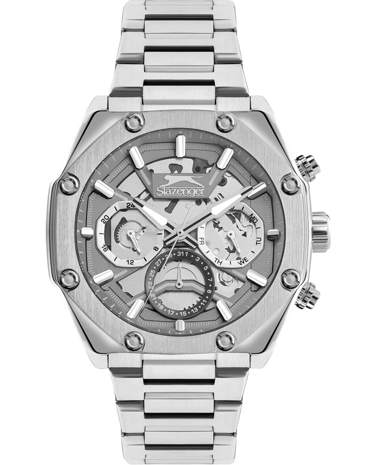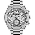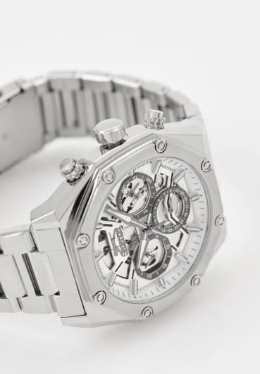 Мужские кварцевые часы Slazenger SL.09.2318.2.05 - это выразительный и функциональный аксессуар, сочетающий стиль, технологичность и насыщенную комплектацию. Корпус и браслет выполнены из суперметалла. Циферблат защищён минеральным стекломМинеральное стеклоМинеральное стекло представляет собой искусственно выращенный минерал кварца. Такое стекло отличается особой устойчивостью к повреждениям и царапинам. Уступает по некоторым качествам сапфировому стеклу. и частично скелетонизирован, что позволяет наблюдать за работой механизма, и дополнен вынесенными малыми циферблатами для индикации дня недели, даты и времени в 24-часовом формате. Стрелки и метки оснащены люминесцентным покрытиемЛюминесцентное покрытиеПозволяет считывать показания времени в темноте. Производители наносят на стрелки, часовые индексы, безель или поверхность циферблата светонакопительный состав, дающий холодное свечение., обеспечивающим хорошую читаемость в темноте. Браслет из суперметалла фиксируется на раскладной застёжкеРаскладная застёжкаТакой тип застёжки используется только на браслетах из металла. Она никогда не раскрывается полностью, происходит разделение на 2 и более частей. Раскладывающая застёжка снизит вероятность потери часов к минимуму., обеспечивая удобство и надёжность ношения. Водонепроницаемость 50 м позволяет использовать часы в повседневных условиях, защищая от случайных брызг и капель дождя. Модель подчёркивает индивидуальность владельца и идеально подходит как для повседневного, так и для делового образа.