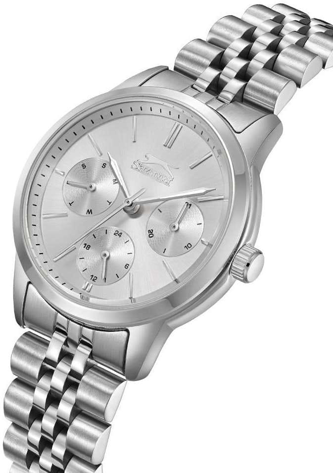 Женские элегантные наручные часы Slazenger SL.09.2336.4.01 сочетают в себе современный стиль и функциональность. Корпус выполнен из суперметалла, придающий модели дополнительную прочность и элегантный внешний вид. Изысканный циферблат защищён минеральным стекломМинеральное стеклоМинеральное стекло представляет собой искусственно выращенный минерал кварца. Такое стекло отличается особой устойчивостью к повреждениям и царапинам. Уступает по некоторым качествам сапфировому стеклу., устойчивым к царапинам и повреждениям. Водонепроницаемость 3 АТМ позволяет использовать часы в повседневных условиях — при мытье рук или под лёгким дождём. Часы оснащены дополнительными циферблатами, отображающими дату, день недели и 24-часовой формат времени, что добавляет практичности в повседневном использовании. Браслет из суперметалла и с раскладной застёжкойРаскладная застёжкаТакой тип застёжки используется только на браслетах из металла. Она никогда не раскрывается полностью, происходит разделение на 2 и более частей. Раскладывающая застёжка снизит вероятность потери часов к минимуму. обеспечивает надёжную фиксацию и комфорт при ношении. Эта модель идеально подходит для женщин, ценящих стиль, функциональность и надёжность в одном аксессуаре.