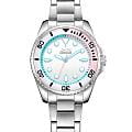 Женские кварцевые часы Slazenger SL.09.2353.3.07 – это сочетание элегантности, современного стиля и надёжности. Изящный корпус из суперметалла серебристого цвета, диаметром 32 мм и толщиной 10 мм, подчёркивает утончённость модели и делает их идеальным аксессуаром для любой ситуации – будь то деловая встреча, романтический вечер или повседневные выходы. Циферблат надёжно защищён минеральным стекломМинеральное стеклоМинеральное стекло представляет собой искусственно выращенный минерал кварца. Такое стекло отличается особой устойчивостью к повреждениям и царапинам. Уступает по некоторым качествам сапфировому стеклу., которое устойчиво к механическим повреждениям и сохраняет кристальную прозрачность. Браслет из суперметалла удобно облегает запястье и фиксируется с помощью раскладной застёжкиРаскладная застёжкаТакой тип застёжки используется только на браслетах из металла. Она никогда не раскрывается полностью, происходит разделение на 2 и более частей. Раскладывающая застёжка снизит вероятность потери часов к минимуму., обеспечивая надёжность и комфорт в повседневном ношении. Утончённый стиль, внимание к деталям и практичность делают эту модель идеальным выбором для современных женщин, ценящих эстетику и функциональность. Поворотный безельБезельВнешний ободок, закрепляющий стекло. В спортивных часах так называется поворотное кольцо с делениями на циферблате, выполняет роль таймера – замеряет отрезки времени на шкале. Неподвижный безель – элемент декора. Однонаправленно вращающийся безель на дайверских часах позволяет фиксировать моменты погружения и выныривания на поверхность. с IP-покрытиемIP-покрытиеМетод ионного напыления. Демонстрирует повышенную устойчивость к истиранию, окислению и химическим веществам. Под воздействием высокого давления и температуры около 1500°C молекулы металла надёжно соединяются с частицами корпуса часов.. Стрелки и метки покрыты люминесцентным покрытиемЛюминесцентное покрытиеПозволяет считывать показания времени в темноте. Производители наносят на стрелки, часовые индексы, безель или поверхность циферблата светонакопительный состав, дающий холодное свечение., обеспечивающим отличную читаемость в темноте. Водозащита до 30 метров позволит защитить корпус от случайных брызг или капель дождя.