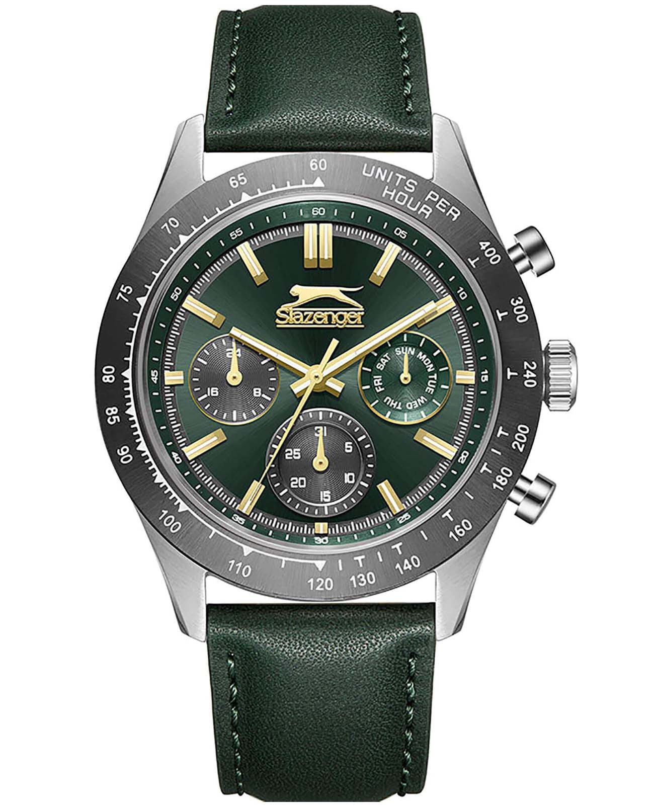 Мужские кварцевые часы Slazenger SL.09.2359.2.02 – идеальное сочетание классического дизайна и современных технологий, созданное для уверенных в себе мужчин. Корпус выполнен из суперметалла серебристого цвета, диаметром 43 мм и толщиной 11 мм, подчёркивает надежность модели и делает их идеальным аксессуаром для любой ситуации – будь то деловая встреча или повседневные выходы. Циферблат надёжно защищён минеральным стекломМинеральное стеклоМинеральное стекло представляет собой искусственно выращенный минерал кварца. Такое стекло отличается особой устойчивостью к повреждениям и царапинам. Уступает по некоторым качествам сапфировому стеклу., которое устойчиво к механическим повреждениям и сохраняет кристальную прозрачность. Неподвижный безельБезельВнешний ободок, закрепляющий стекло. В спортивных часах так называется поворотное кольцо с делениями на циферблате, выполняет роль таймера – замеряет отрезки времени на шкале. Неподвижный безель – элемент декора. Однонаправленно вращающийся безель на дайверских часах позволяет фиксировать моменты погружения и выныривания на поверхность. с IP-покрытиемIP-покрытиеМетод ионного напыления. Демонстрирует повышенную устойчивость к истиранию, окислению и химическим веществам. Под воздействием высокого давления и температуры около 1500°C молекулы металла надёжно соединяются с частицами корпуса часов.. Кожаный ремешок на стандартной застёжке удобно облегает запястье, обеспечивая надёжность и комфорт в повседневном ношении. Стрелки покрыты люминесцентным покрытиемЛюминесцентное покрытиеПозволяет считывать показания времени в темноте. Производители наносят на стрелки, часовые индексы, безель или поверхность циферблата светонакопительный состав, дающий холодное свечение., обеспечивающим отличную читаемость в темноте. Эти часы станут не просто аксессуаром, а надежным спутником в любой ситуации, подчеркивая ваш безупречный вкус и деловой стиль. Вынесенный циферблат с 24-х часовым указателем времени и функция тахиметраТахиметрРазмеченная шкала, располагается на ободке или безеле часов. Тахиметр позволяет рассчитать скорость на определённом участке пути, расстояние измеряется в километрах или милях.. Водозащита 50 метров позволит защитить корпус от случайных брызг или капель дождя.