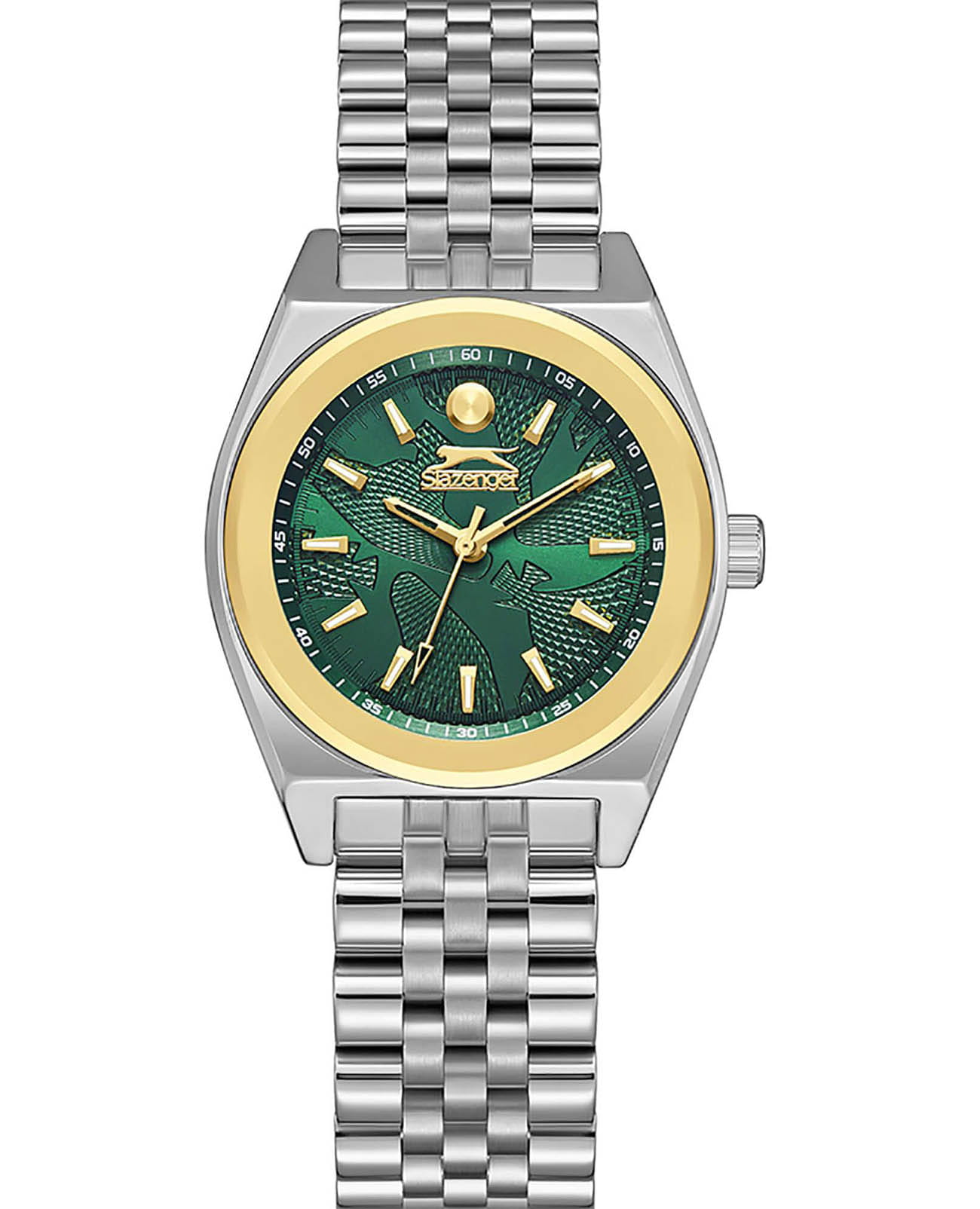 Женские кварцевые часы Slazenger — это элегантный аксессуар, сочетающий стиль и надёжность. Корпус диаметром 32 мм и толщиной 9 мм выполнен из суперметалла с IP-покрытиемIP-покрытиеМетод ионного напыления. Демонстрирует повышенную устойчивость к истиранию, окислению и химическим веществам. Под воздействием высокого давления и температуры около 1500°C молекулы металла надёжно соединяются с частицами корпуса часов.. Циферблат зелёного цвета защищён минеральным стекломМинеральное стеклоМинеральное стекло представляет собой искусственно выращенный минерал кварца. Такое стекло отличается особой устойчивостью к повреждениям и царапинам. Уступает по некоторым качествам сапфировому стеклу.. Механизм — кварцевый калибр VJ21C1. Часы оснащены браслетом из суперметалла с раскладной застёжкойРаскладная застёжкаТакой тип застёжки используется только на браслетах из металла. Она никогда не раскрывается полностью, происходит разделение на 2 и более частей. Раскладывающая застёжка снизит вероятность потери часов к минимуму.. Водонепроницаемость 30 м позволяет использовать часы в повседневных условиях. Гарантия — 12 месяцев. Идеальный выбор для тех, кто ценит классический дизайн и качество.