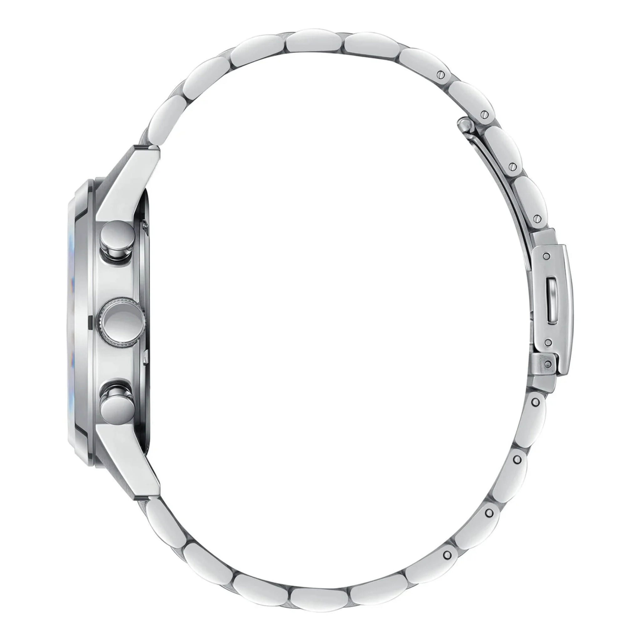 Мужские кварцевые часы Slazenger — это выразительный и функциональный аксессуар. Корпус диаметром 42 мм и толщиной 12 мм выполнен из нержавеющей стали 316L. Циферблат синего цвета оформлен индексами и стрелками. Окошко даты расположено на отметке в 6 часов. Указатель дня недели и 24-часовой формат времени вынесены на отдельные субциферблаты. Циферблат защищён минеральным стекломМинеральное стеклоМинеральное стекло представляет собой искусственно выращенный минерал кварца. Такое стекло отличается особой устойчивостью к повреждениям и царапинам. Уступает по некоторым качествам сапфировому стеклу.. Механизм — кварцевый калибр JP25. Часы оснащены функцией второго часового пояса (GMT)Второй часовой поясФункция, позволяющая отображать время двух часовых поясов одновременно.. Стрелки и метки с люминесцентным покрытиемЛюминесцентное покрытиеПозволяет считывать показания времени в темноте. Производители наносят на стрелки, часовые индексы, безель или поверхность циферблата светонакопительный состав, дающий холодное свечение., обеспечивающим хорошую читаемость в темноте. Часы оснащены стальным браслетом с раскладной застёжкойРаскладная застёжкаТакой тип застёжки используется только на браслетах из металла. Она никогда не раскрывается полностью, происходит разделение на 2 и более частей. Раскладывающая застёжка снизит вероятность потери часов к минимуму.. Водонепроницаемость 100 м позволяет использовать часы для плавания и повседневного ношения. Гарантия — 12 месяцев. Идеальный выбор для тех, кто ценит стиль, функциональность и качество.