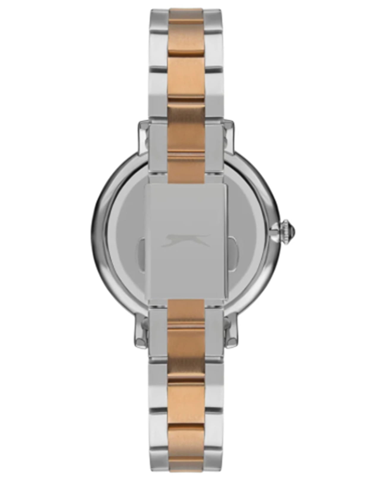 Женские кварцевые часы Slazenger — элегантный аксессуар с гармоничным дизайном и продуманной конструкцией. Корпус диаметром 35 мм и толщиной 8,5 мм выполнен из суперметалла. БезельБезельВнешний ободок, закрепляющий стекло. В спортивных часах так называется поворотное кольцо с делениями на циферблате, выполняет роль таймера – замеряет отрезки времени на шкале. Неподвижный безель – элемент декора. Однонаправленно вращающийся безель на дайверских часах позволяет фиксировать моменты погружения и выныривания на поверхность. с IP-покрытиемIP-покрытиеМетод ионного напыления. Демонстрирует повышенную устойчивость к истиранию, окислению и химическим веществам. Под воздействием высокого давления и температуры около 1500°C молекулы металла надёжно соединяются с частицами корпуса часов.. Циферблат серебристого цвета оформлен индексами и стрелками. Циферблат защищён минеральным стекломМинеральное стеклоМинеральное стекло представляет собой искусственно выращенный минерал кварца. Такое стекло отличается особой устойчивостью к повреждениям и царапинам. Уступает по некоторым качествам сапфировому стеклу.. Механизм — кварцевый калибр Miyota 2035. Браслет из суперметалла с IP-покрытиемIP-покрытиеМетод ионного напыления. Демонстрирует повышенную устойчивость к истиранию, окислению и химическим веществам. Под воздействием высокого давления и температуры около 1500°C молекулы металла надёжно соединяются с частицами корпуса часов.., обеспечивает цельный и утончённый образ. Часы оснащены раскладной застёжкойРаскладная застёжкаТакой тип застёжки используется только на браслетах из металла. Она никогда не раскрывается полностью, происходит разделение на 2 и более частей. Раскладывающая застёжка снизит вероятность потери часов к минимуму.. Водонепроницаемость 30 м позволяет использовать часы в повседневных условиях. Стильное решение для тех, кто ценит лаконичность и качество.
