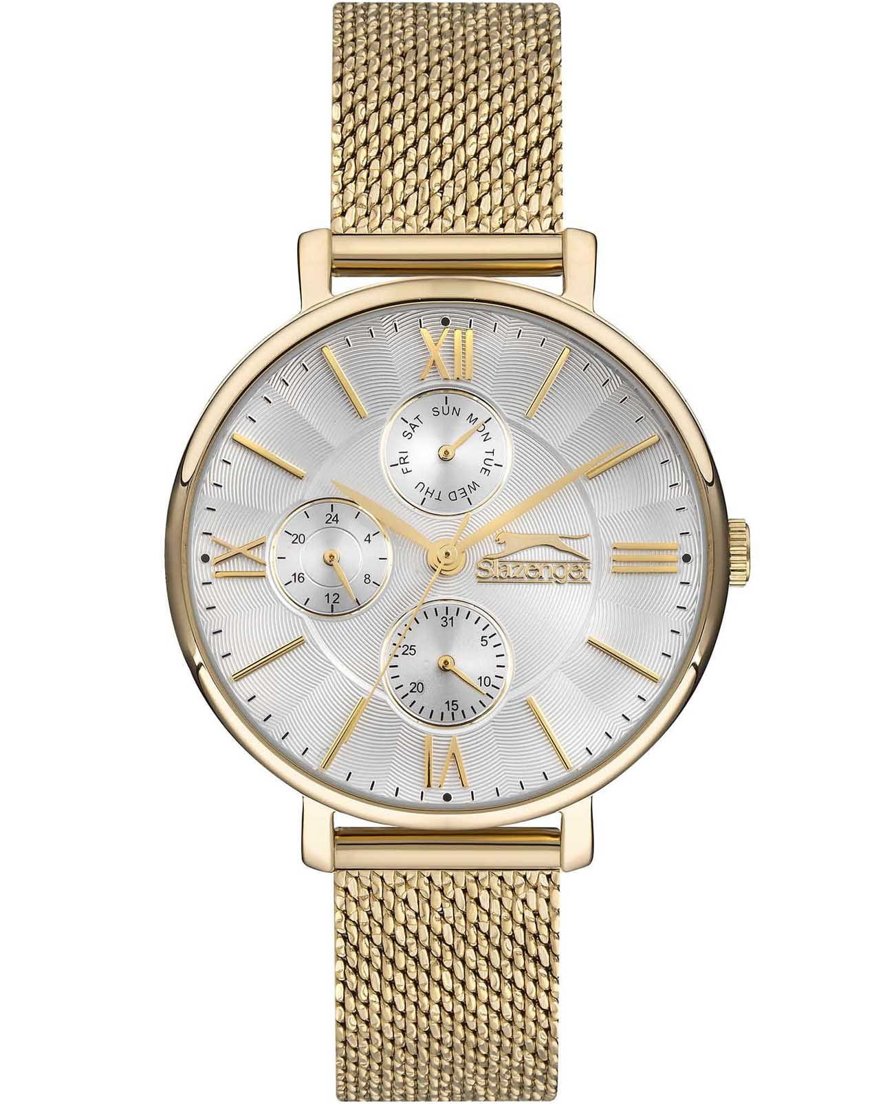 Женские элегантные наручные часы Slazenger SL.09.6543.4.02 сочетают в себе современный стиль и функциональность. Корпус выполнен из суперметалла с IP-покрытиемIP-покрытиеМетод ионного напыления. Демонстрирует повышенную устойчивость к истиранию, окислению и химическим веществам. Под воздействием высокого давления и температуры около 1500°C молекулы металла надёжно соединяются с частицами корпуса часов., придающий модели дополнительную прочность и элегантный внешний вид. Изысканный циферблат защищён минеральным стекломМинеральное стеклоМинеральное стекло представляет собой искусственно выращенный минерал кварца. Такое стекло отличается особой устойчивостью к повреждениям и царапинам. Уступает по некоторым качествам сапфировому стеклу., устойчивым к царапинам и повреждениям. Часы оснащены дополнительными циферблатами, отображающими дату, день недели и 24-часовой формат времени, что добавляет практичности в повседневном использовании. Водонепроницаемость 3 АТМ позволяет использовать часы в повседневных условиях — при мытье рук или под лёгким дождём. Браслет из суперметалла с IP-покрытиемIP-покрытиеМетод ионного напыления. Демонстрирует повышенную устойчивость к истиранию, окислению и химическим веществам. Под воздействием высокого давления и температуры около 1500°C молекулы металла надёжно соединяются с частицами корпуса часов. и с раскладным замкомРаскладной замокДанный вариант застежки используется только на часах с металлическим браслетом. Отличительная особенность такого крепления в том, что длина браслета становится универсальной и вы можете самостоятельно отрегулировать нужный вам размер – застежка просто двигается по браслету часов. обеспечивает надёжную фиксацию и комфорт при ношении. Эта модель идеально подходит для женщин, ценящих стиль, функциональность и надёжность в одном аксессуаре.