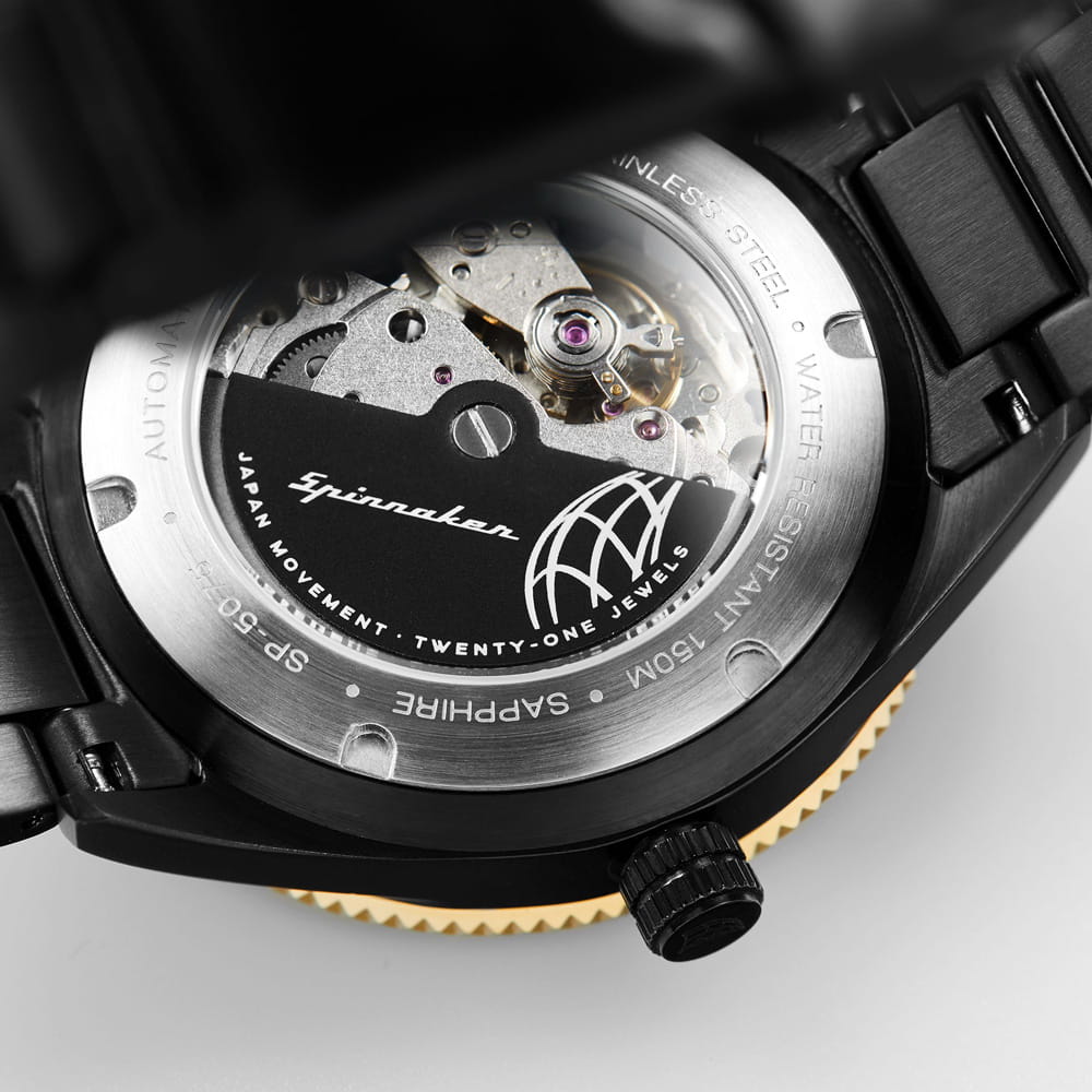 Мужские итальянские часы Spinnaker Dumas SP-5075-33, механический механизм (автоматический калибр) с высокой точностью. Циферблат с люминесцентным покрытиемЛюминесцентное покрытиеПозволяет считывать показания времени в темноте. Производители наносят на стрелки, часовые индексы, безель или поверхность циферблата светонакопительный состав, дающий холодное свечение. стрелок и меток, дополнен сапфировым стекломСапфировое стеклоПрочный и надёжный материал из кристалла сапфира синтетического происхождения, характеризующийся особой твёрдостью и устойчивостью к царапинам и повреждениям., устойчивым к появлению царапин и обладающее высокой прозрачностью. Класс водозащиты: 150 метров, позволит плавать, нырять и заниматься другими водными видами спорта. Корпус часов изготовлен из стали.
