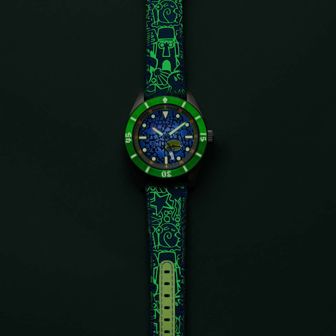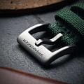 Мужские механические часы с автоподзаводом Spinnaker — это стильный и функциональный аксессуар. Корпус диаметром 43 мм и толщиной 13 мм выполнен из нержавеющей стали. БезельБезельВнешний ободок, закрепляющий стекло. В спортивных часах так называется поворотное кольцо с делениями на циферблате, выполняет роль таймера – замеряет отрезки времени на шкале. Неподвижный безель – элемент декора. Однонаправленно вращающийся безель на дайверских часах позволяет фиксировать моменты погружения и выныривания на поверхность. с IP-покрытиемIP-покрытиеМетод ионного напыления. Демонстрирует повышенную устойчивость к истиранию, окислению и химическим веществам. Под воздействием высокого давления и температуры около 1500°C молекулы металла надёжно соединяются с частицами корпуса часов.. Циферблат зелёного цвета оформлен штрихами, точками и стрелками. Присутствует малая секундная стрелка. Стрелки и метки с люминесцентным покрытиемЛюминесцентное покрытиеПозволяет считывать показания времени в темноте. Производители наносят на стрелки, часовые индексы, безель или поверхность циферблата светонакопительный состав, дающий холодное свечение. Super-LumiNova, обеспечивающим хорошую читаемость в темноте. Циферблат защищён сапфировым стекломСапфировое стеклоПрочный и надёжный материал из кристалла сапфира синтетического происхождения, характеризующийся особой твёрдостью и устойчивостью к царапинам и повреждениям. с антибликовым покрытиемАнтибликовое покрытиеСлой оксида металла в 0,13-0,3 микрон, благодаря которому стекло часов не бликует и не отражает свет. Антибликовое покрытие уменьшает отражение света в 10 раз, обеспечивая отличную читаемость показателей циферблата.. Завинчивающаяся заводная головка повышает водонепроницаемость. Часы оснащены зелёным нейлоновым ремешком на стандартной пряжке. Водонепроницаемость 150 м позволяет использовать часы для плавания. Идеальный выбор для тех, кто ценит качество и нестандартный дизайн.
