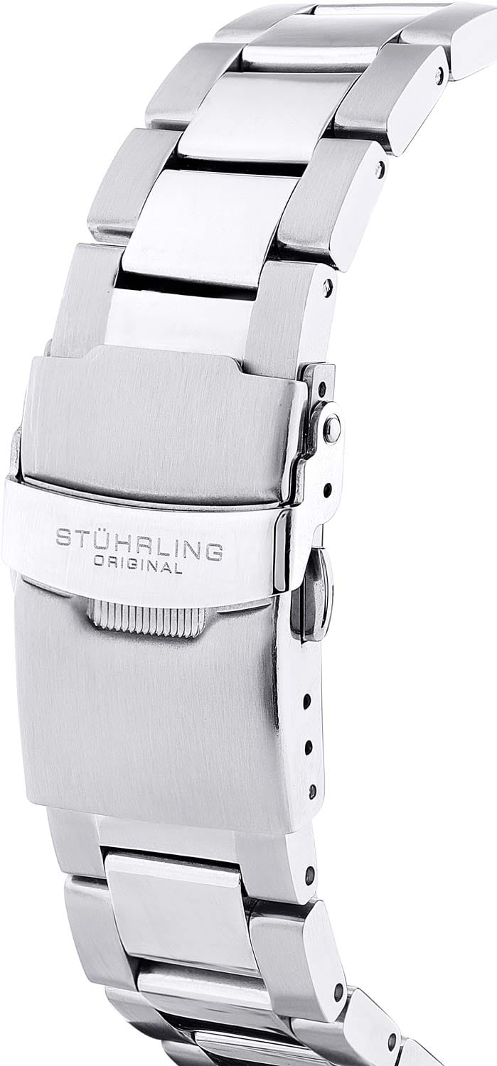Stuhrling 4048.2 — стильные мужские часы в духе морского дайверского дизайна. Глубокий циферблат с радиальным переливом и крупные метки/стрелки с люминесцентным покрытиемЛюминесцентное покрытиеПозволяет считывать показания времени в темноте. Производители наносят на стрелки, часовые индексы, безель или поверхность циферблата светонакопительный состав, дающий холодное свечение. обеспечивают отличную читаемость, вращающийся безельБезельВнешний ободок, закрепляющий стекло. В спортивных часах так называется поворотное кольцо с делениями на циферблате, выполняет роль таймера – замеряет отрезки времени на шкале. Неподвижный безель – элемент декора. Однонаправленно вращающийся безель на дайверских часах позволяет фиксировать моменты погружения и выныривания на поверхность. с PVD-покрытиемPVDУльтратонкое покрытие наносится в технике вакуумного напыления, сочетает в себе нитрид титана особой прочности со слоем золота или оксида хрома. Несёт в себе декоративную или защитную функцию. подчёркивает спортивный характер. Браслет из нержавеющей стали, удобная раскладная застёжкаРаскладная застёжкаТакой тип застёжки используется только на браслетах из металла. Она никогда не раскрывается полностью, происходит разделение на 2 и более частей. Раскладывающая застёжка снизит вероятность потери часов к минимуму. фиксирует часы на запястье. Циферблат прикрыт стеклом KrysternaKrysternaKrysterna — инновационное стекло для наручных часов. Благодаря уникальной структуре, Krysterna объединяет ключевые преимущества двух материалов: твердость сапфира, защищающую от царапин, и гибкость минерального стекла, обеспечивающую устойчивость к деформациям. Такая комбинация делает его идеальным решением для часов, подверженных экстремальным нагрузкам, сохраняя при этом оптическую прозрачность. с высокой стойкостью к царапинам. Надёжный спутник для повседневной настроения и активного отдыха.