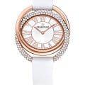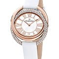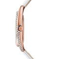 Женские швейцарские часы с кристаллами Swarowski Swarovski 5484385, кварцевый механизм с высокой точностью. Класс водозащиты: 50 метров, позволит защитить корпус от случайных брызг или капель дождя. Корпус часов изготовлен из стали, позолоченного цвета.