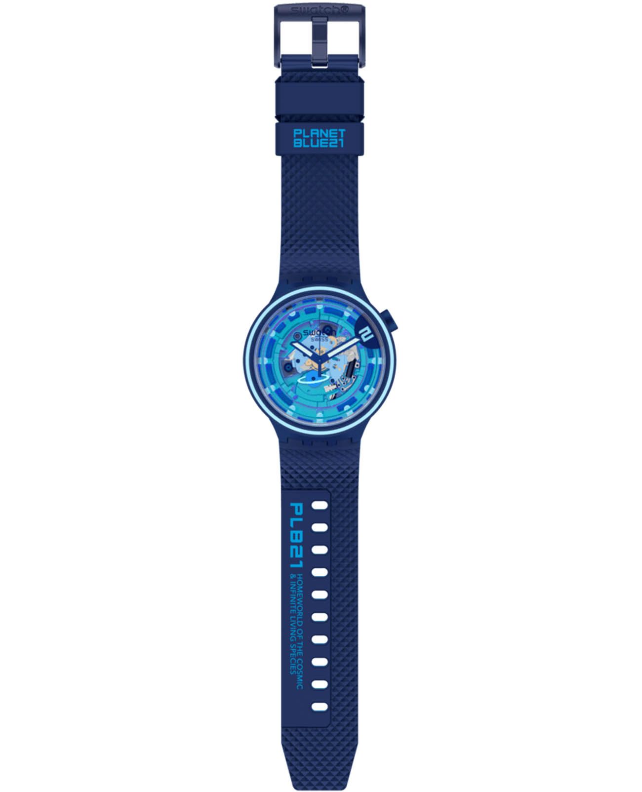 Часы Swatch SB01N101 — это стильный и современный аксессуар для тех, кто ценит лёгкость и комфорт. Часы идеально подойдут как для мужчин, так и для женщин. Модель этих часов идет в комплекте с двумя силиконовыми ремешками в космическом стиле — они эффектно подчеркивают эффект Swatch Solar Spectrum на корпусе часов. Прозрачный циферблат с разноцветным принтом позволяет сделать акцент на светящихся в темноте стрелках. Вместо стандартного колесика механизма находится особый элемент в виде синей планеты. На часовую, минутную стрелки нанесено люминесцентное покрытиеЛюминесцентное покрытиеПозволяет считывать показания времени в темноте. Производители наносят на стрелки, часовые индексы, безель или поверхность циферблата светонакопительный состав, дающий холодное свечение., которое светится в темноте, создавая необычное изображение. Водозащита 30 метров делает часы практичными для повседневного использования. Эти часы подойдут для повседневного ношения и станут ярким акцентом в вашем наряде.