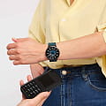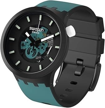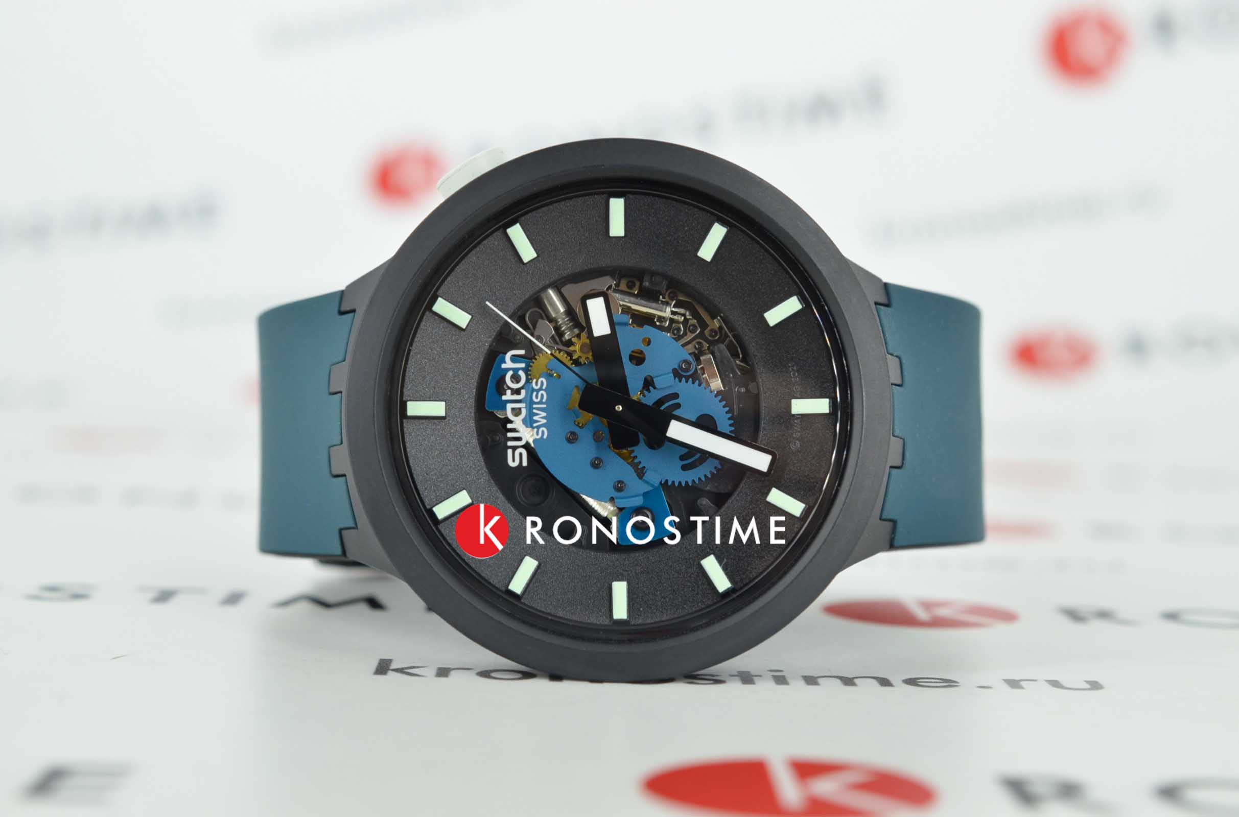 Часы Swatch SB03B111-5300 — это стильный и современный аксессуар для тех, кто ценит лёгкость и комфорт. Часы идеально подойдут как для мужчин, так и для женщин. Центральный элемент этой модели часов — большой корпус со стеклом из био-материала, украшенный 3D-циферблатом с принтами на индексах. Корпус из биокерамикиБиокерамикаБиокерамика — это материал, который на две трети состоит из керамики, на одну треть — из биопластика. Он сочетает в себе лучшие качества обоих материалов и обладает прочностью и шелковистой на ощупь текстурой., а также силиконовые тренчики подчеркивают темно-синий принт на силиконовом ремешке этих огромных часов. На часовую, минутную стрелки нанесено люминесцентное покрытиеЛюминесцентное покрытиеПозволяет считывать показания времени в темноте. Производители наносят на стрелки, часовые индексы, безель или поверхность циферблата светонакопительный состав, дающий холодное свечение., которое светится в темноте, создавая необычное изображение. Эти часы имеют NFC модуль, поэтому это несомненно лучший способ оплачивать покупки. Водозащита 30 метров делает часы практичными для повседневного использования. Эти часы подойдут для повседневного ношения и станут ярким акцентом в вашем наряде.