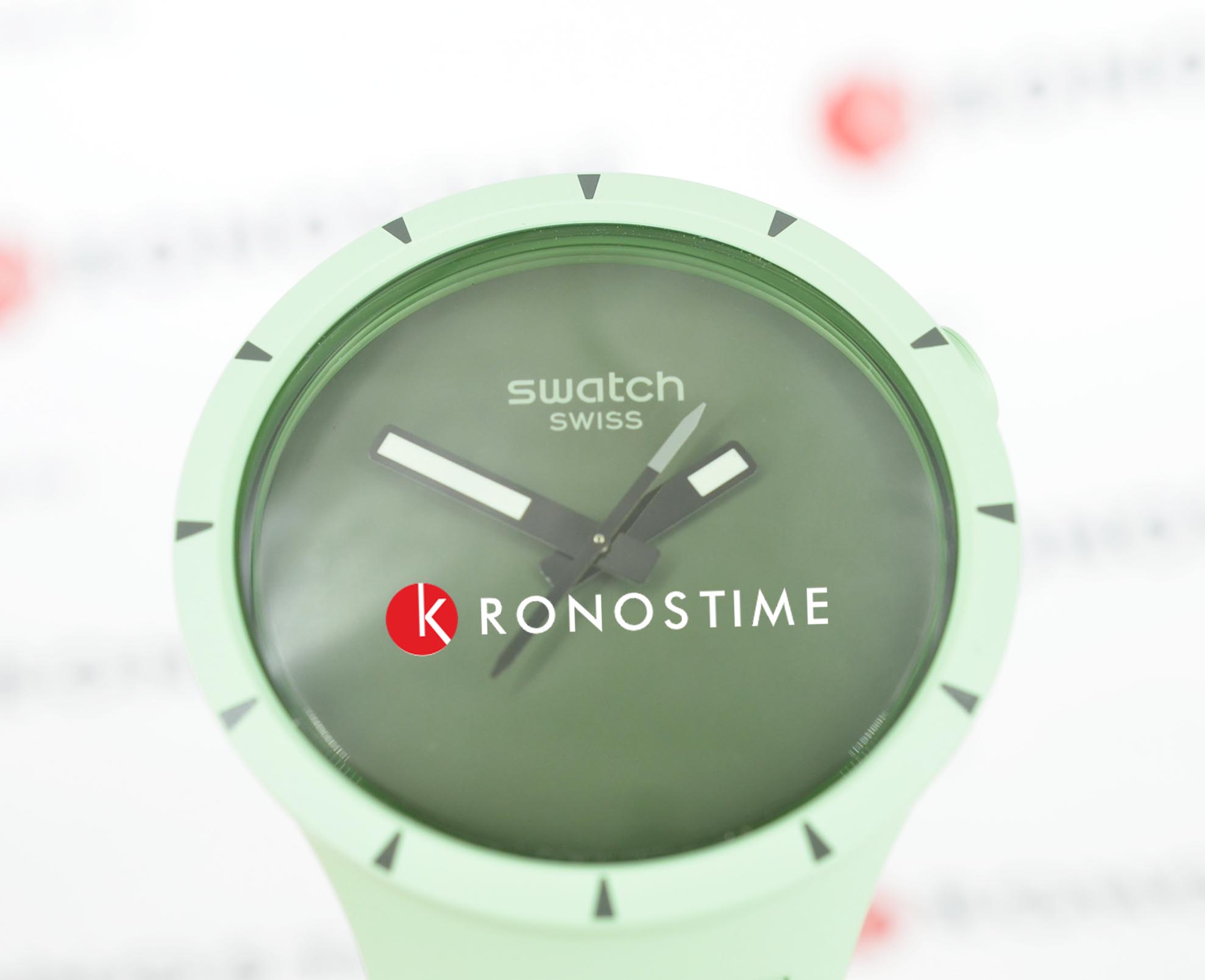 Часы Swatch SB03G100 — это стильный и современный аксессуар для тех, кто ценит лёгкость и комфорт. Часы идеально подойдут как для мужчин, так и для женщин. Корпус из биокерамикиБиокерамикаБиокерамика — это материал, который на две трети состоит из керамики, на одну треть — из биопластика. Он сочетает в себе лучшие качества обоих материалов и обладает прочностью и шелковистой на ощупь текстурой., а ремешок — из однотонного матово-зеленого силикона. Темно-зеленый циферблат подчеркивает белые акценты на темных стрелках. Секундная стрелка, прообразом которой стала стрелка компаса, усиливает дух приключений. На часовую и минутную стрелки нанесено люминесцентное покрытиеЛюминесцентное покрытиеПозволяет считывать показания времени в темноте. Производители наносят на стрелки, часовые индексы, безель или поверхность циферблата светонакопительный состав, дающий холодное свечение., которое светится в темноте, создавая необычное изображение. Водозащита 30 метров делает часы практичными для повседневного использования. Эти часы подойдут для повседневного ношения и станут ярким акцентом в вашем наряде.