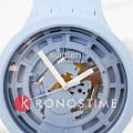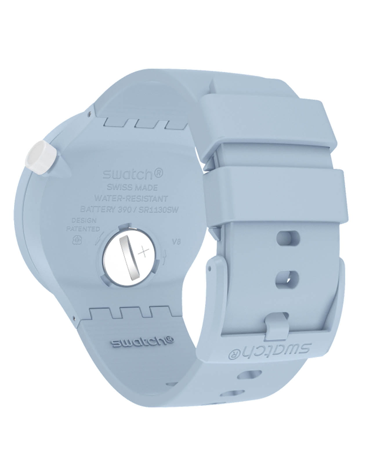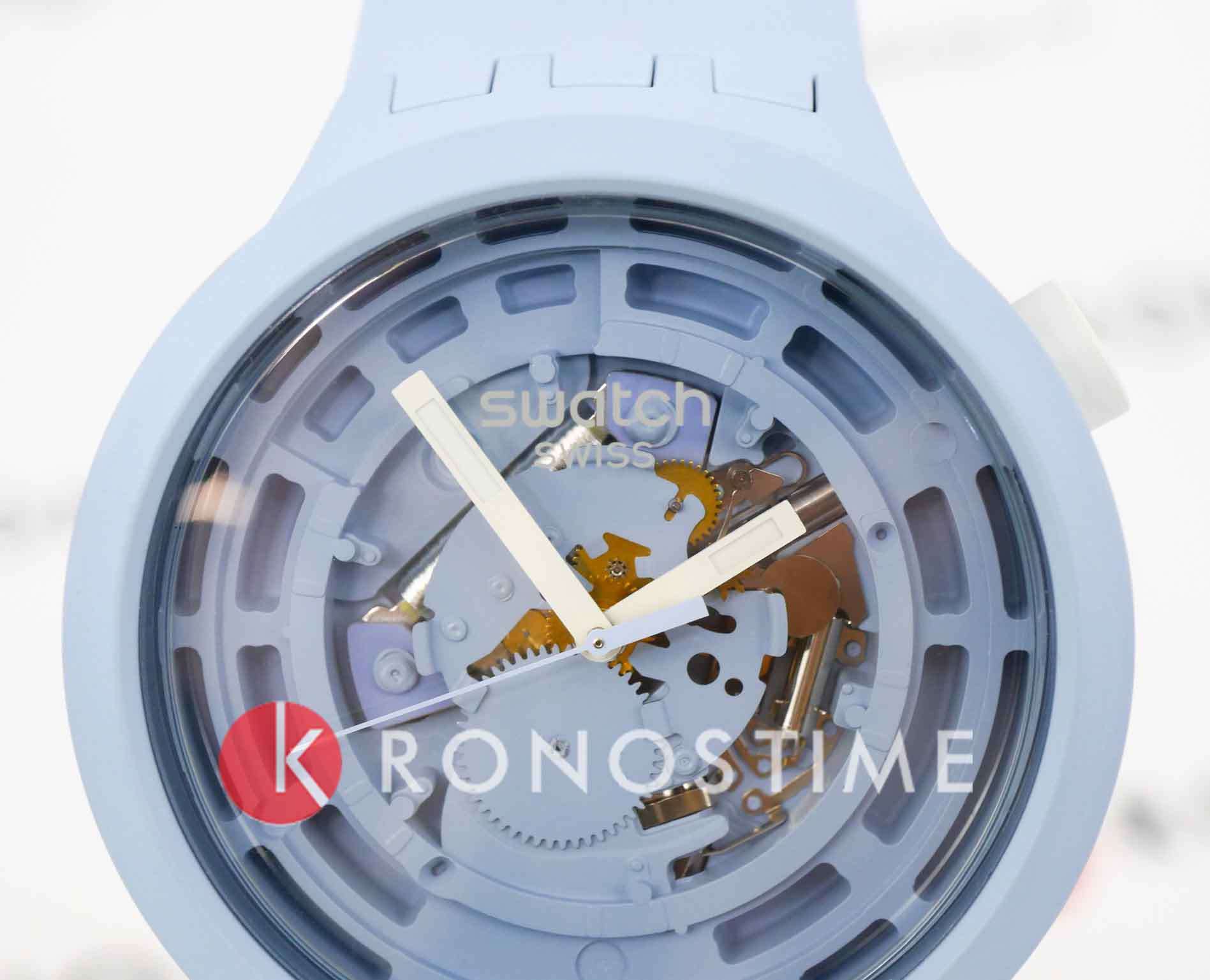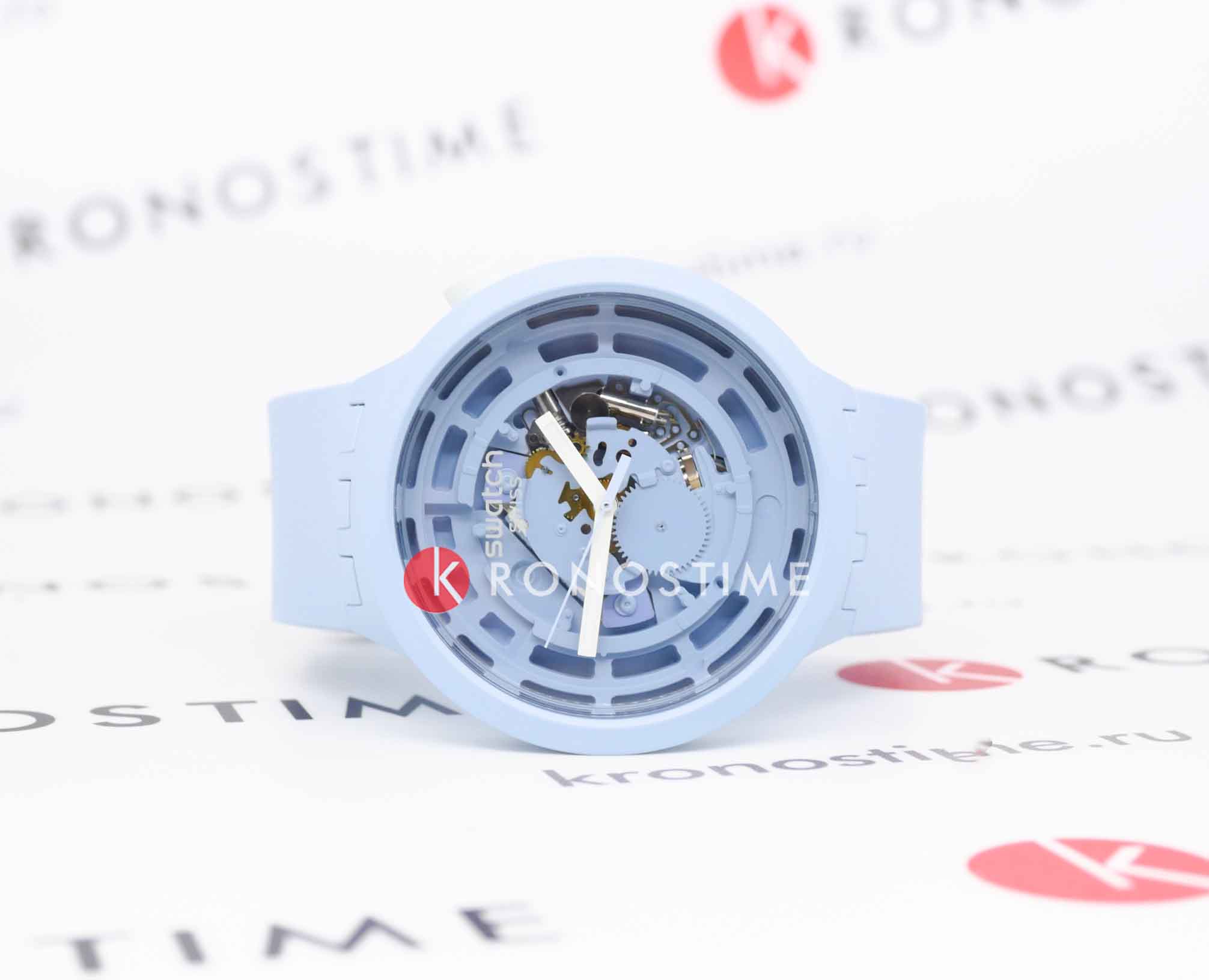 Часы Swatch SB03N100 — это стильный и современный аксессуар для тех, кто ценит лёгкость и комфорт. Часы идеально подойдут как для мужчин, так и для женщин. Прекрасный образец часов, выполненных полностью из материалов биологического происхождения: открытый механизм и биокерамикаБиокерамикаБиокерамика — это материал, который на две трети состоит из керамики, на одну треть — из биопластика. Он сочетает в себе лучшие качества обоих материалов и обладает прочностью и шелковистой на ощупь текстурой., которая создает ощущение шелковистости. Впечатляющий дизайн голубого цвета — инновация в своем лучшем проявлении. На часовую, минутную стрелки нанесено люминесцентное покрытиеЛюминесцентное покрытиеПозволяет считывать показания времени в темноте. Производители наносят на стрелки, часовые индексы, безель или поверхность циферблата светонакопительный состав, дающий холодное свечение., которое светится в темноте, создавая необычное изображение. Водозащита 30 метров делает часы практичными для повседневного использования. Эти часы подойдут для повседневного ношения и станут ярким акцентом в вашем наряде.