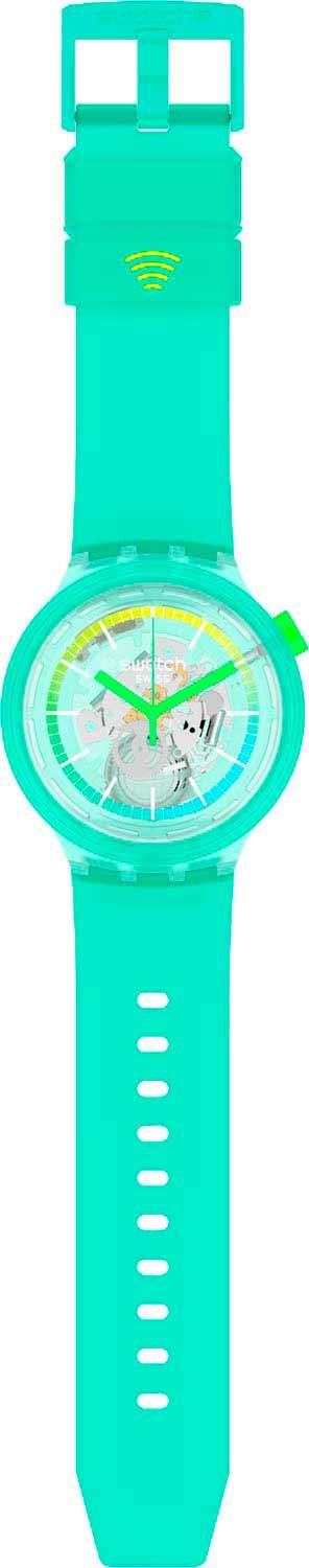 Современные молодежные часы с функцией бесконтактной оплаты, Swatch SSO27L100-5300, идеально подойдут для тех, кто стремится идти в ногу со временем и получать максимум от жизни. Эти наручные скелетонизированные часы от бренда Swatch. Имеют унисекс-дизайн. Встроенный NFC-чип позволяет использовать бесконтактную оплату SwatchPAY!, разработанную в сотрудничестве с Mastercard. Эта функция будет работать даже в случае разрядки батареи часов. С помощью приложения SwatchPAY! на смартфоне вы сможете управлять картой, блокировать её и отслеживать свои платежи. Часы имеют круглый пластиковый корпус и метки в виде штрихов. Стекло выполнено из многослойного акрила, а заводная головка расположена в положении 2 часа. Единственным отличием от обычных часов является значок Wi-Fi на ремешке, который оснащен классической алюминиевой застежкой.