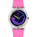 Эти ярко окрашенные ретро-часы Swatch SO28K111 вдохновлены часами Swatch из 90-х: SKYCHART GN705. Их многоцветный неоновый циферблат помещен в прозрачный корпус, изготовленный из биоматериала. Ремешок силиконовый ярко-розового цвета и голубая пряжка завершают неоновый образ этих винтажных часов Swatch.