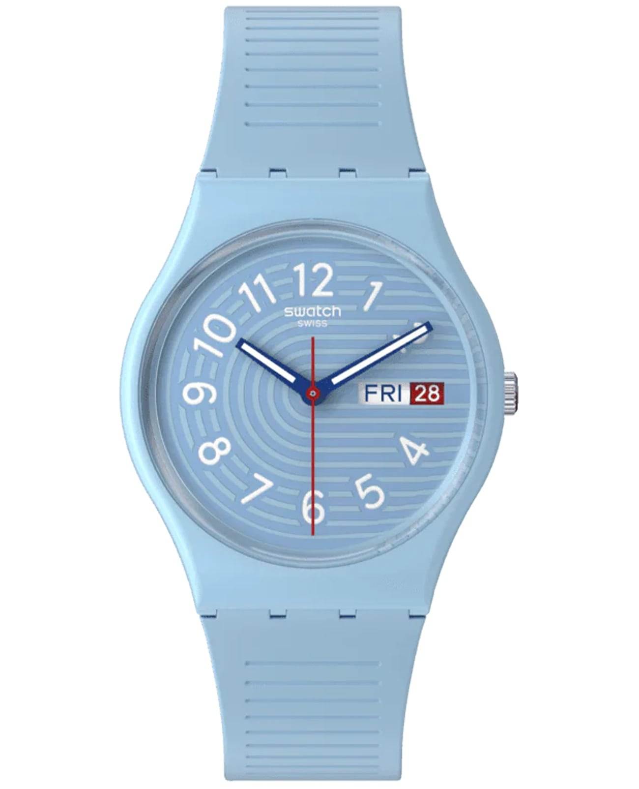 Часы Swatch  SO28S704 — это стильный и современный аксессуар, который идеально подходит для повседневного ношения. Эти часы небесно-голубого цвета имеют корпус из биоматериала и голубой циферблат с арабскими цифрами и окошком даты и дней недели. Стрелки со светящимися в темноте кончиками с люминесцентным покрытиемЛюминесцентное покрытиеПозволяет считывать показания времени в темноте. Производители наносят на стрелки, часовые индексы, безель или поверхность циферблата светонакопительный состав, дающий холодное свечение. помогают ориентироваться в темноте. Стекло часов изготовлено из прочного полимера, устойчивого к царапинам и ударам. Ремешок часов  выполнен из силикона и имеет регулируемую длину, на классической застежке. Внутри часов установлен надежный кварцевый механизм, который обеспечивает точность хода. Эти часы водонепроницаемы до 30 метров, что позволяет не беспокоиться о случайных брызгах или дождевых каплях. Swatch SO28S704 — это идеальный выбор для тех, кто ценит сочетание стиля, комфорта и функциональности в одном аксессуаре.