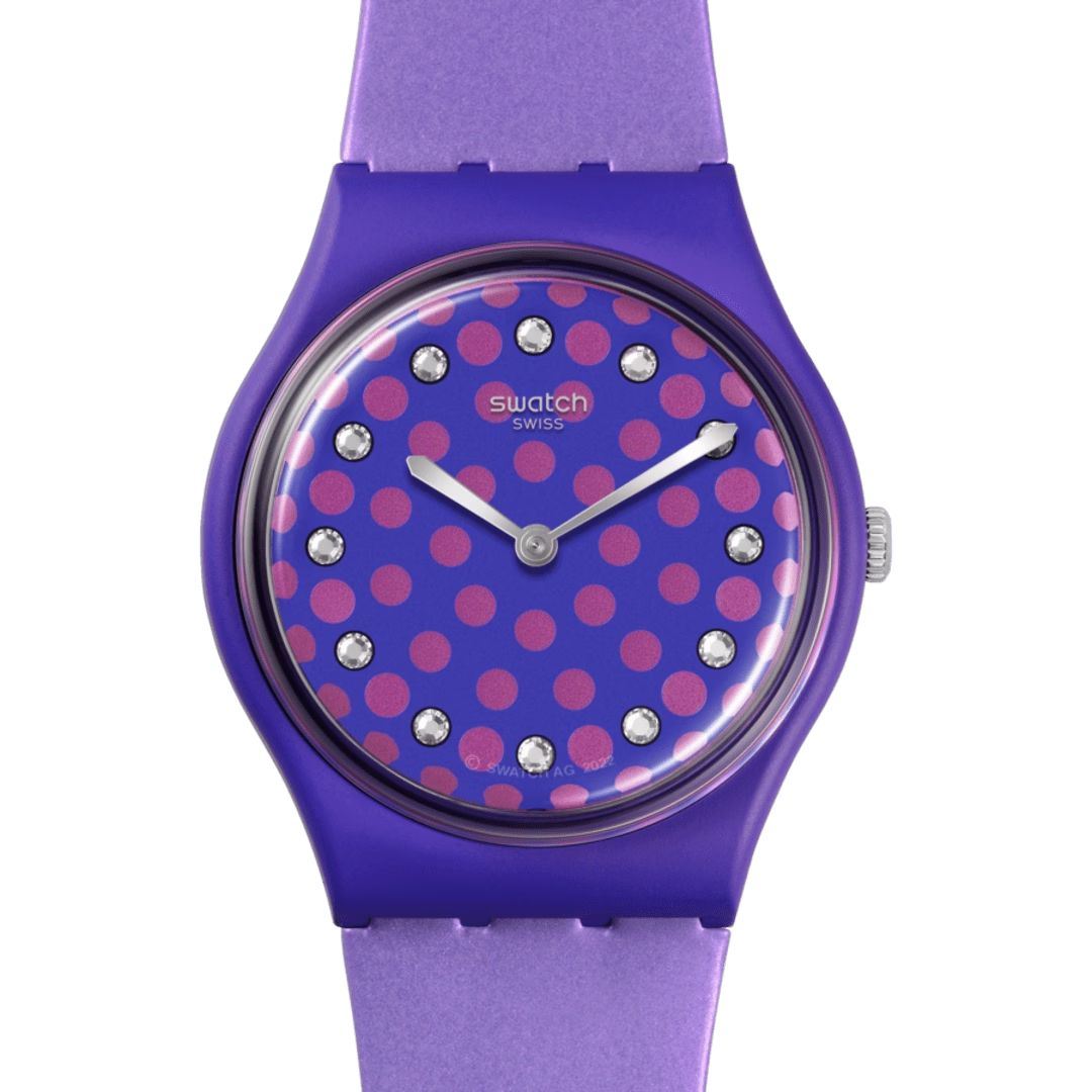 Часы Swatch SO31V100 — стильный и удобный аксессуар. Кварцевые часы с корпусом из биокерамики. Фиолетовые часы, декорированные 12 кристаллами вместо индексов, розовым принтом на циферблате и серебристыми стрелками. Ремешок силиконовый на стандартной застёжке. Внутри часов установлен надежный кварцевый механизм, который обеспечивает точность хода. Эти часы водонепроницаемы до 30 метров, что позволяет не беспокоиться о случайных брызгах или дождевых каплях. Swatch SO31V100 — это идеальный выбор для тех, кто ценит сочетание стиля, комфорта и функциональности в одном аксессуаре.