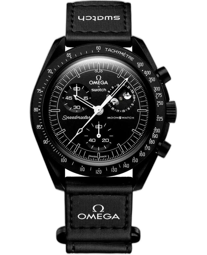 Швейцарские мужские часы Swatch x Omega Bioceramic Moonswatch Mission to The Moonphase - New Moon SO33B700 с хронографом