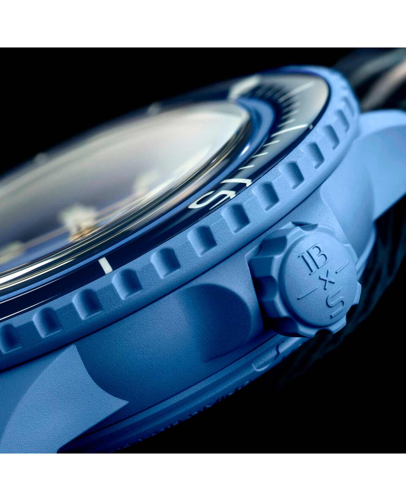 Наручные часы сочетают в себе современный дизайн и инновационные технологии. Модель обладает круглым корпусом диаметром 42,3 мм, изготовленным из биокерамикиБиокерамикаБиокерамика — это материал, который на две трети состоит из керамики, на одну треть — из биопластика. Он сочетает в себе лучшие качества обоих материалов и обладает прочностью и шелковистой на ощупь текстурой., что обеспечивает высокую прочность и устойчивость к внешним воздействиям . Толщина корпуса составляет 14,4 мм, а расстояние между ушками — 48,0 мм, что делает часы удобными для повседневного использования . Ремешок выполнен из ткани в стиле ремешка NATOРемешок NATOРемешок NATO — это прочный, универсальный и сменный часовой ремешок, изначально созданный для военных. Он изготовлен из нейлона или другого прочного материала и имеет уникальную конструкцию, которая позволяет часам оставаться на запястье даже в случае поломки одной из прикрепляющих точек. , гарантируя комфортное ношение и долговечность . Синий циферблат дополнен люминесцентными метками и арабскими цифрами, что обеспечивает четкость считывания времени в любых условиях . Для защиты используется органическое стекло, обеспечивающее надежную защиту от царапин и механических повреждений . Часы работают на автоматическом механизме Sistem51, что гарантирует точность хода без необходимости регулярной подзаводки . Водонепроницаемость часов достигает 100 метров, что позволяет использовать их в повседневных условиях, однако не рекомендуется погружение на большую глубину . Дополнительные элементы дизайна, такие как заводная головка и кнопки-пушеры, выполненные из биокерамикиБиокерамикаБиокерамика — это материал, который на две трети состоит из керамики, на одну треть — из биопластика. Он сочетает в себе лучшие качества обоих материалов и обладает прочностью и шелковистой на ощупь текстурой., завершают образ этих стильных и функциональных часов.