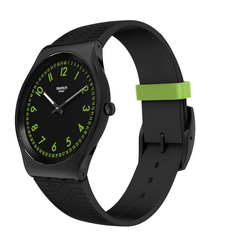 Часы Swatch SS07B108 — это стильный и современный аксессуар для тех, кто ценит лёгкость и комфорт. Часы идеально подойдут как для мужчин, так и для женщин. Эффектность данной модели придает черный циферблат с зелеными индексами и черными стрелками, светящимися в темноте благодаря люминесцентному покрытиюЛюминесцентное покрытиеПозволяет считывать показания времени в темноте. Производители наносят на стрелки, часовые индексы, безель или поверхность циферблата светонакопительный состав, дающий холодное свечение., а также минеральное стеклоМинеральное стеклоМинеральное стекло представляет собой искусственно выращенный минерал кварца. Такое стекло отличается особой устойчивостью к повреждениям и царапинам. Уступает по некоторым качествам сапфировому стеклу.. Эти черные часы дополнены каучуковым ремешком с текстурированной лицевой стороной и зеленым тренчиком, а также матовой пряжкой и корпусом с черным PVDPVDУльтратонкое покрытие наносится в технике вакуумного напыления, сочетает в себе нитрид титана особой прочности со слоем золота или оксида хрома. Несёт в себе декоративную или защитную функцию. покрытием. Водозащита 30 метров делает часы практичными для повседневного использования. Эти часы подойдут для повседневного ношения и станут ярким акцентом в вашем наряде.