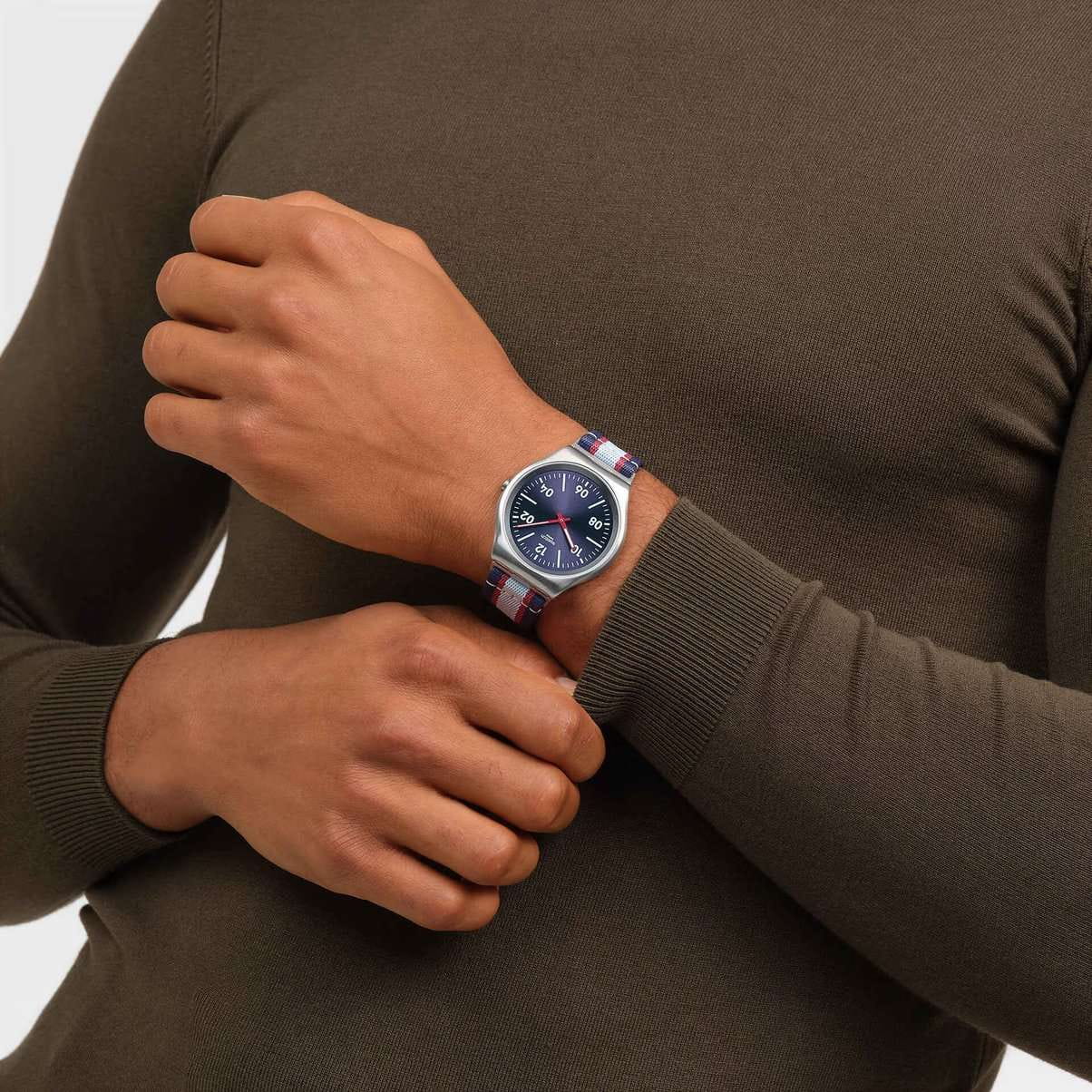 Мужские наручные часы Swatch BESIDE THE SEA SS07S148 — это стильный и современный аксессуар для тех, кто ценит лёгкость и комфорт. Корпус выполнен из нержавеющей стали серебристого цвета, диаметром 42 мм и толщиной 6.7 мм, что обеспечивает долговечность и утончённый внешний вид. Циферблат защищён органическим стеклом, устойчивым к повреждениям. Модель оснащена кварцевым механизмом, обеспечивающим высокую точность хода. Стрелки с люминесцентным покрытиемЛюминесцентное покрытиеПозволяет считывать показания времени в темноте. Производители наносят на стрелки, часовые индексы, безель или поверхность циферблата светонакопительный состав, дающий холодное свечение.. Тканевый ремешок на стандартной застёжке гармонично дополняет корпус и обеспечивает комфортное ношение. Водозащита 30 метров делает часы практичными для повседневного использования. Эти часы подойдут для повседневного ношения и станут ярким акцентом в вашем наряде.