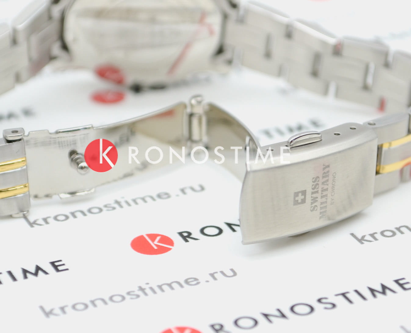 Женские швейцарские наручные часы Swiss Military by Chrono SM30201.32, кварцевый механизм с высокой точностью. Сапфировое стеклоСапфировое стеклоПрочный и надёжный материал из кристалла сапфира синтетического происхождения, характеризующийся особой твёрдостью и устойчивостью к царапинам и повреждениям. устойчивое к появлению царапин, обладающее высокой прозрачностью. Класс водозащиты: 100 метров, позволит плавать, нырять и заниматься другими водными видами спорта. Корпус часов изготовлен из стали.БезельБезельВнешний ободок, закрепляющий стекло. В спортивных часах так называется поворотное кольцо с делениями на циферблате, выполняет роль таймера – замеряет отрезки времени на шкале. Неподвижный безель – элемент декора. Однонаправленно вращающийся безель на дайверских часах позволяет фиксировать моменты погружения и выныривания на поверхность. с PVD-покрытиемPVDУльтратонкое покрытие наносится в технике вакуумного напыления, сочетает в себе нитрид титана особой прочности со слоем золота или оксида хрома. Несёт в себе декоративную или защитную функцию.. Браслет с раскладной застёжкойРаскладная застёжкаТакой тип застёжки используется только на браслетах из металла. Она никогда не раскрывается полностью, происходит разделение на 2 и более частей. Раскладывающая застёжка снизит вероятность потери часов к минимуму. и с частичным PVD-покрытиемPVDУльтратонкое покрытие наносится в технике вакуумного напыления, сочетает в себе нитрид титана особой прочности со слоем золота или оксида хрома. Несёт в себе декоративную или защитную функцию..
