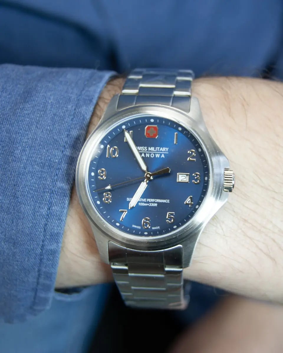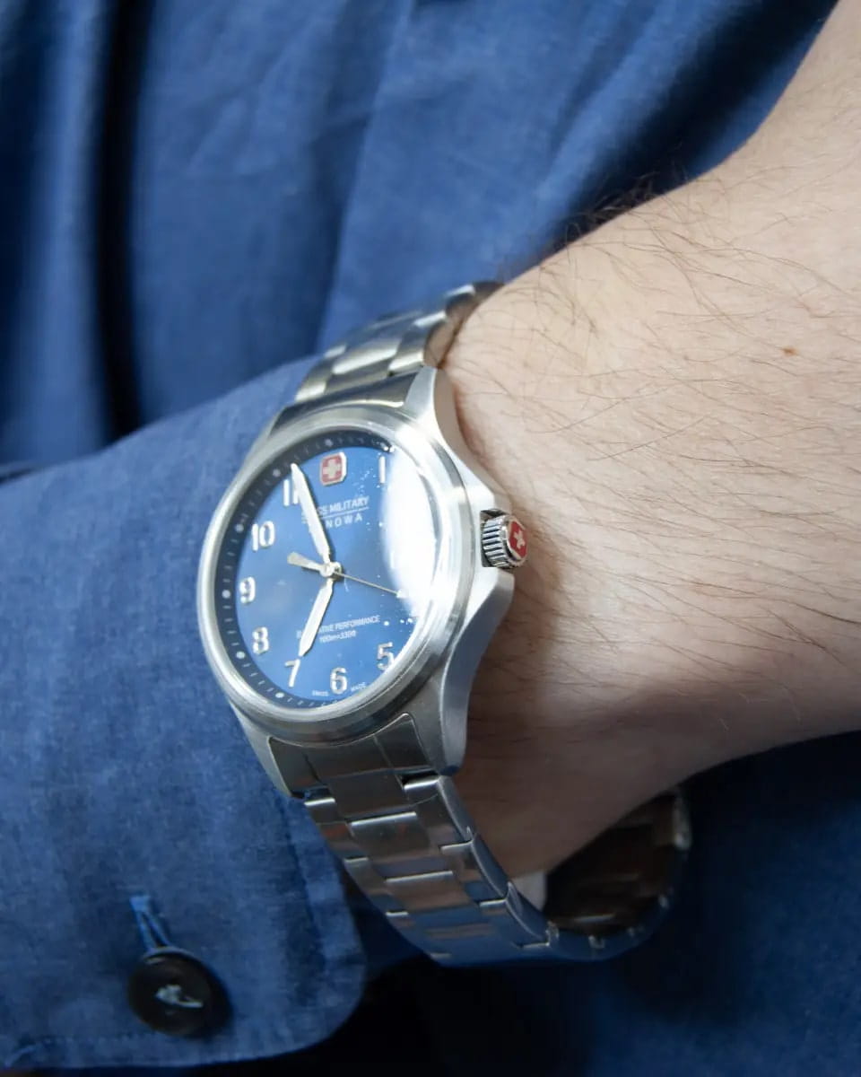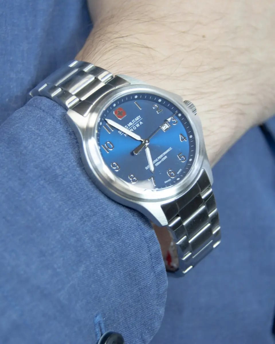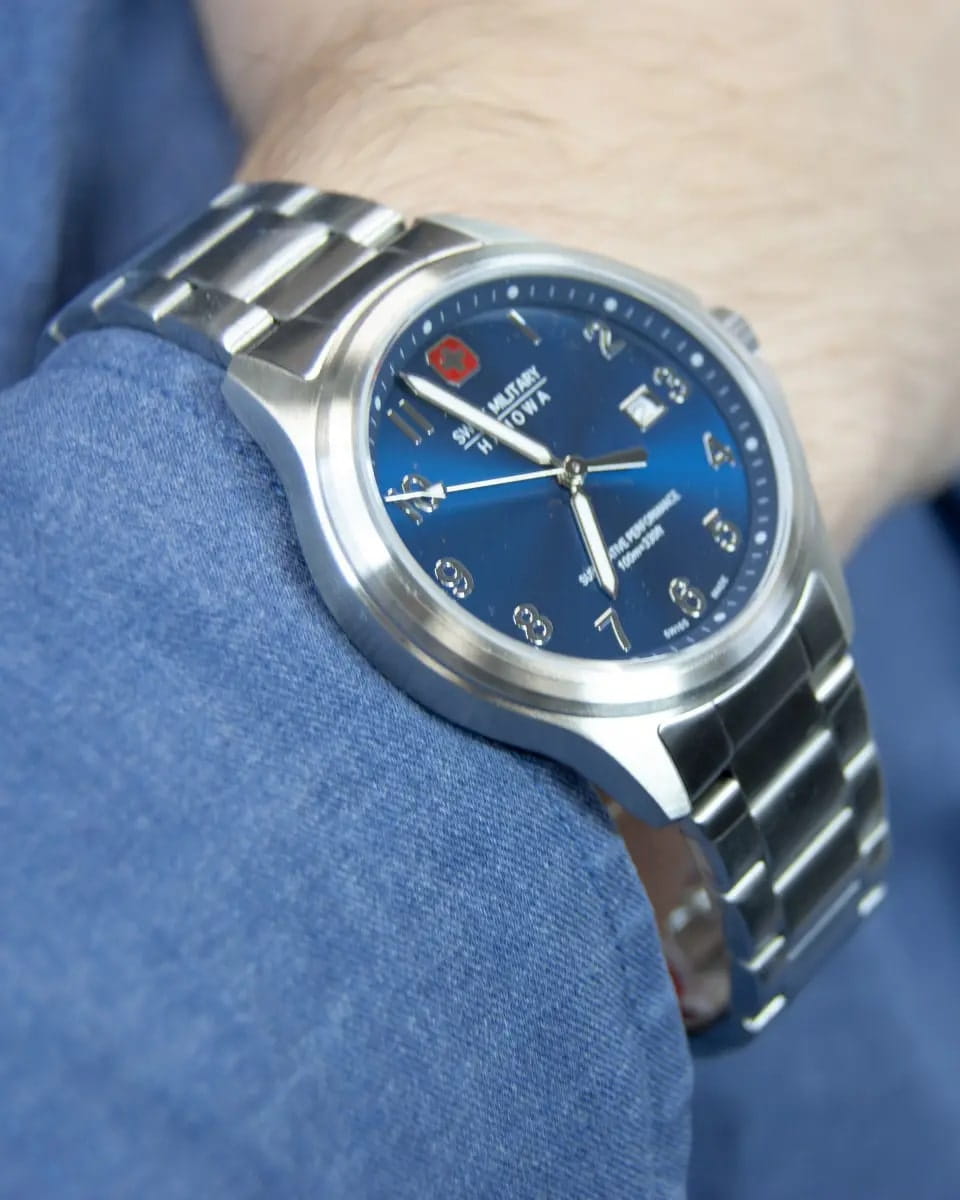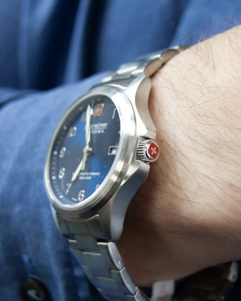 Мужские швейцарские часы Swiss Military Hanowa Thunderbolt SMWGH0002803, кварцевый механизм с высокой точностью. Сапфировое стеклоСапфировое стеклоПрочный и надёжный материал из кристалла сапфира синтетического происхождения, характеризующийся особой твёрдостью и устойчивостью к царапинам и повреждениям. устойчивое к появлению царапин, обладающее высокой прозрачностью. Класс водозащиты: 100 метров, позволит плавать, нырять и заниматься другими водными видами спорта. Корпус часов изготовлен из стали. Стальной браслет на раскладной застёжкеРаскладная застёжкаТакой тип застёжки используется только на браслетах из металла. Она никогда не раскрывается полностью, происходит разделение на 2 и более частей. Раскладывающая застёжка снизит вероятность потери часов к минимуму..