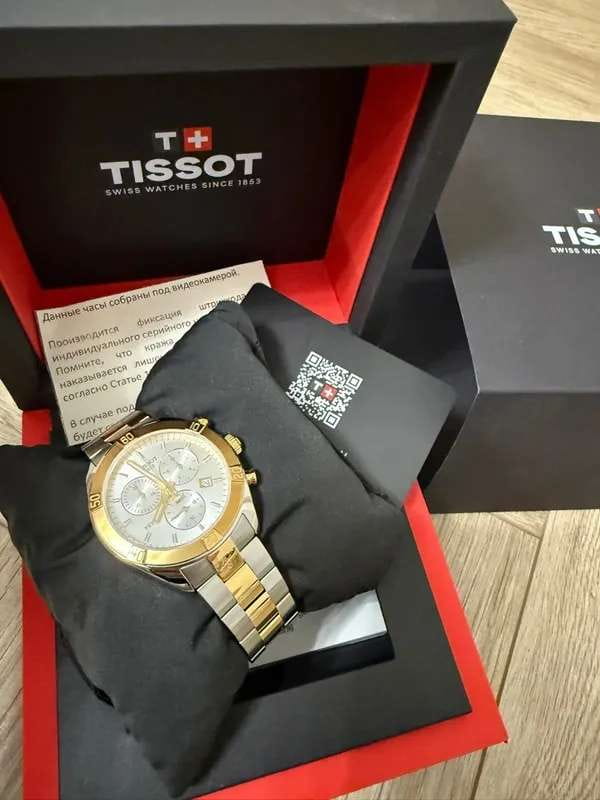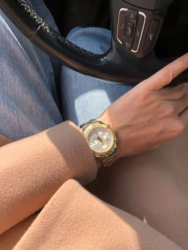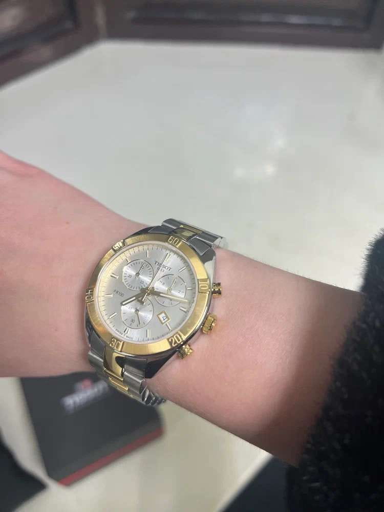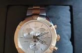 Модель привлекает оригинальным внешним видом, дизайнеры умело сочетают серебристый и золотистый оттенок. Классический стиль со спортивными деталями позволяет использовать часы в качестве дополнения к любому образу. Минималистичный циферблат. Кварцевый калибр ETA G15.212 с высокой точностью хода. Водонепроницаемость до 10 бар. Функционал: хронограф, секундомер, календарь. Габариты: 38 x 38 x 10,5 мм.