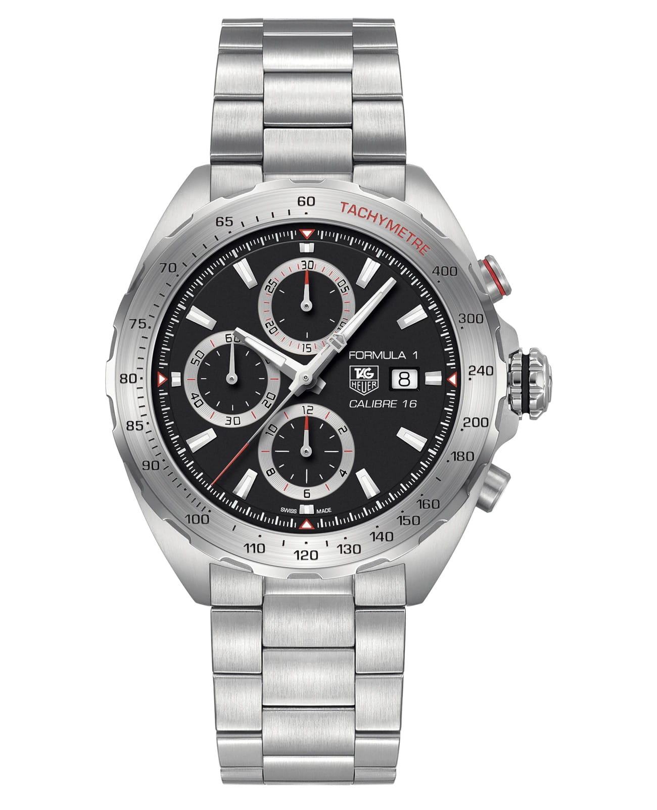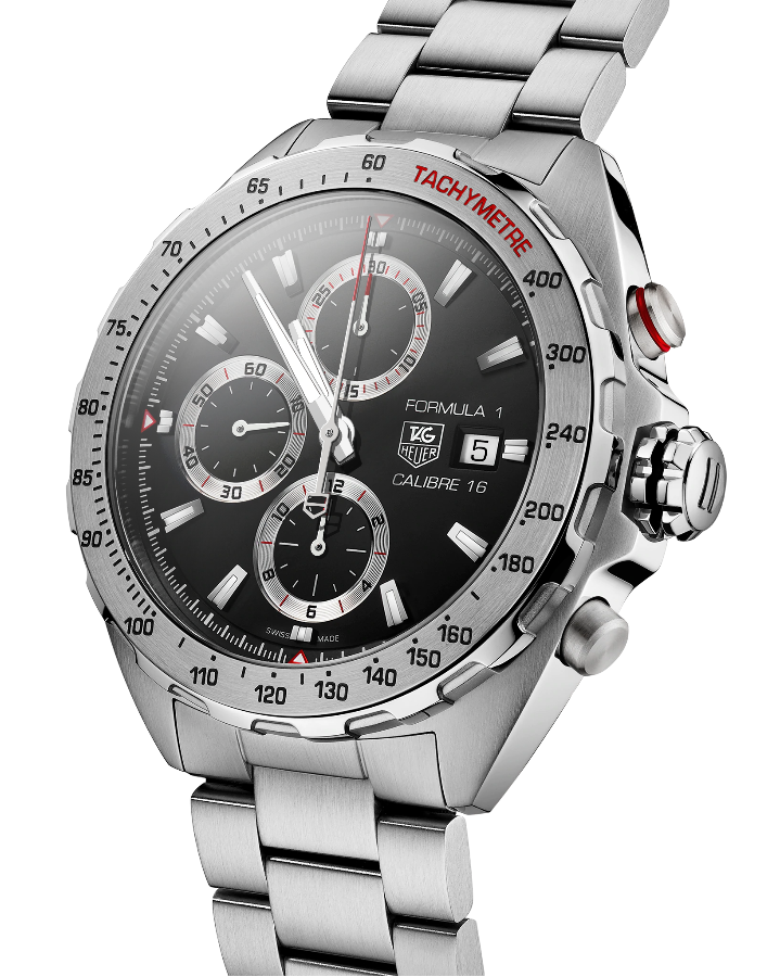 Профессиональный спортивный хронограф 44 мм с черным циферблатом, тремя вспомогательными циферблатами и стальным, вращающимся в одном направлении, безелем со шкалой тахиметра для преобразования расстояния в скорость. Метки на безеле, вдохновленные гонками, являются символом знаковой коллекции. TAG Heuer Formula 1 CAZ2010.BA0876, механический механизм (автоматический калибр) с высокой точностью. Сапфировое стекло устойчивое к появлению царапин, обладающее высокой прозрачностью. Класс водозащиты: 200 метров, позволит плавать, нырять и заниматься другими водными видами спорта. Корпус часов изготовлен из стали, цвета.