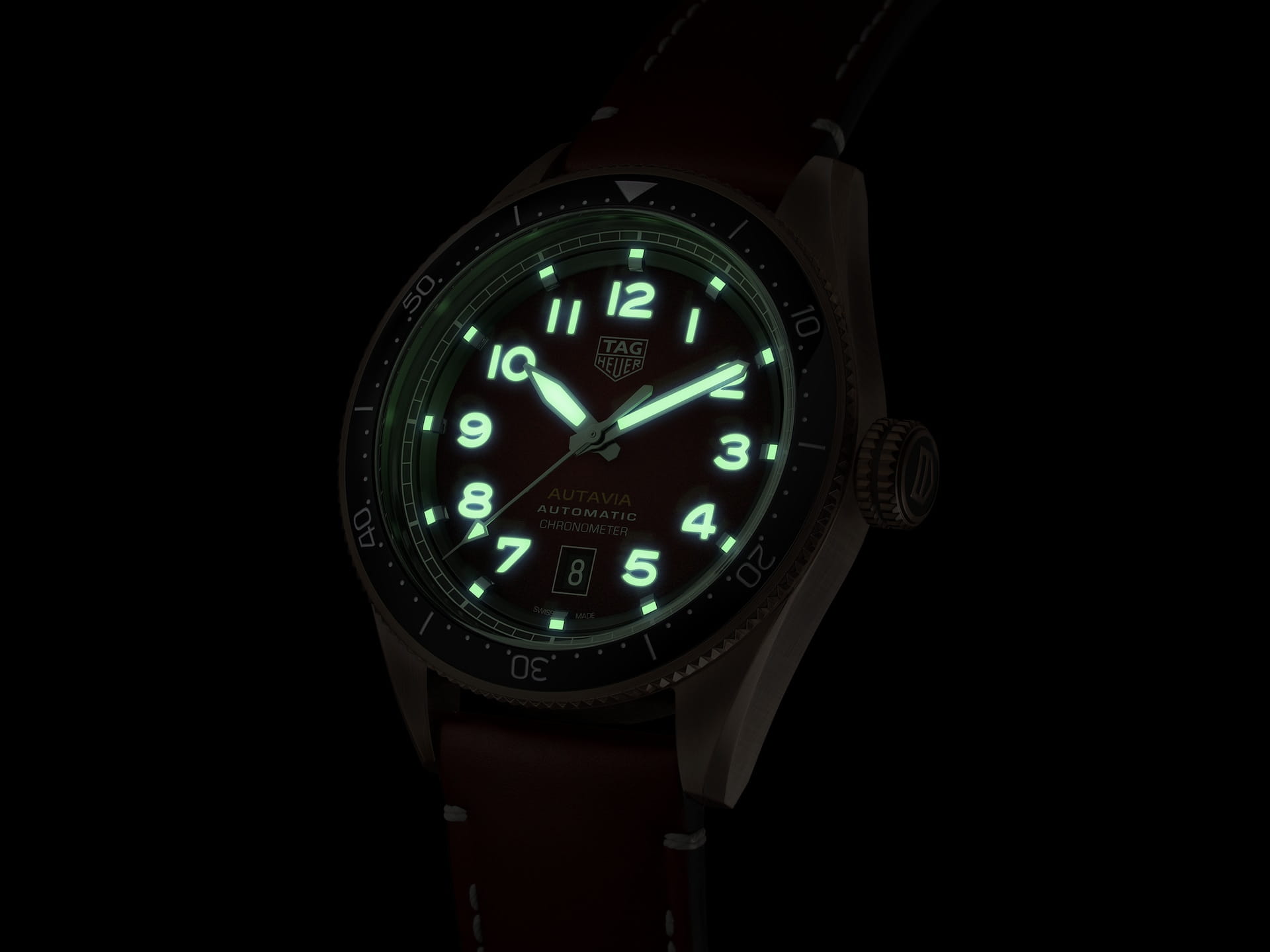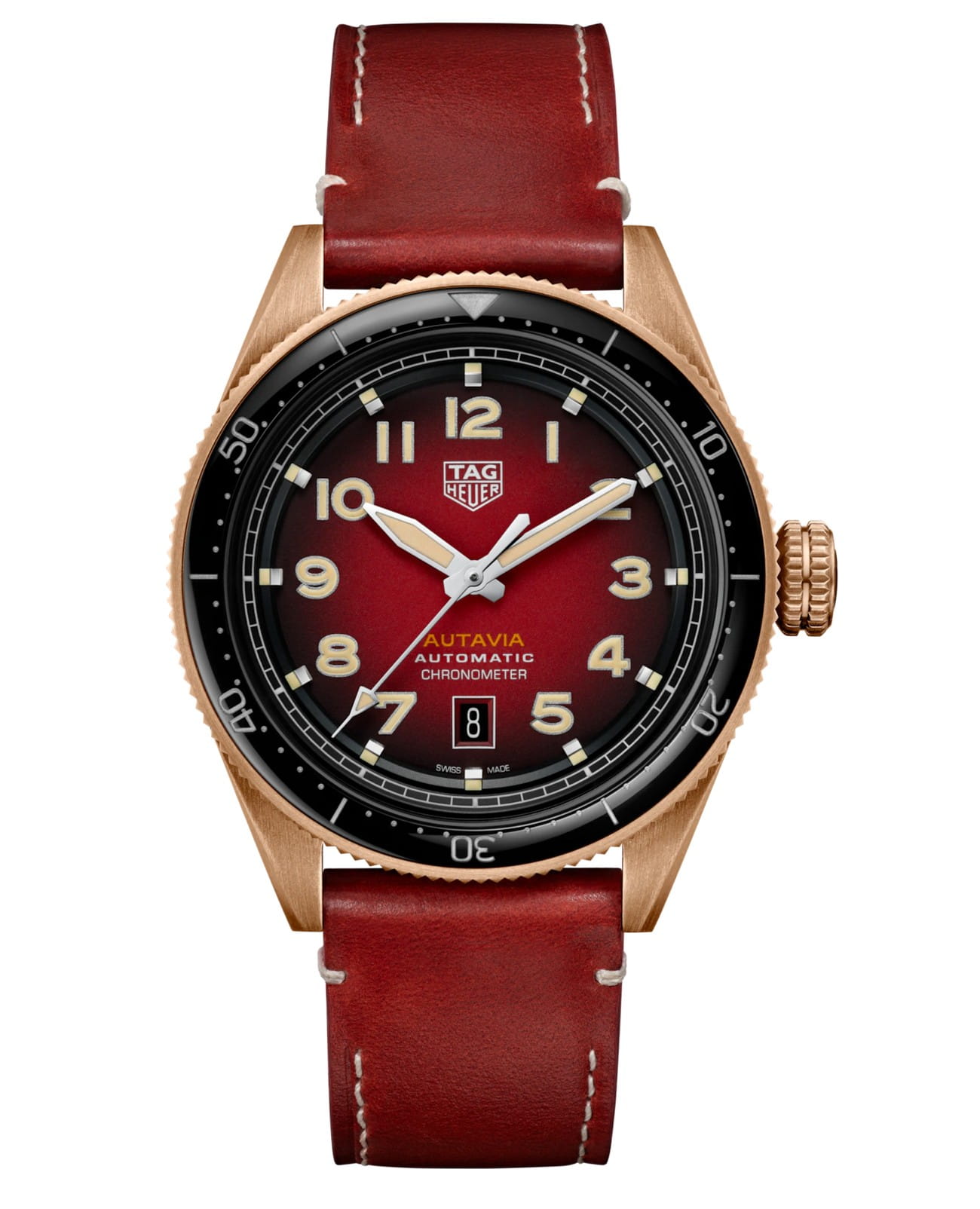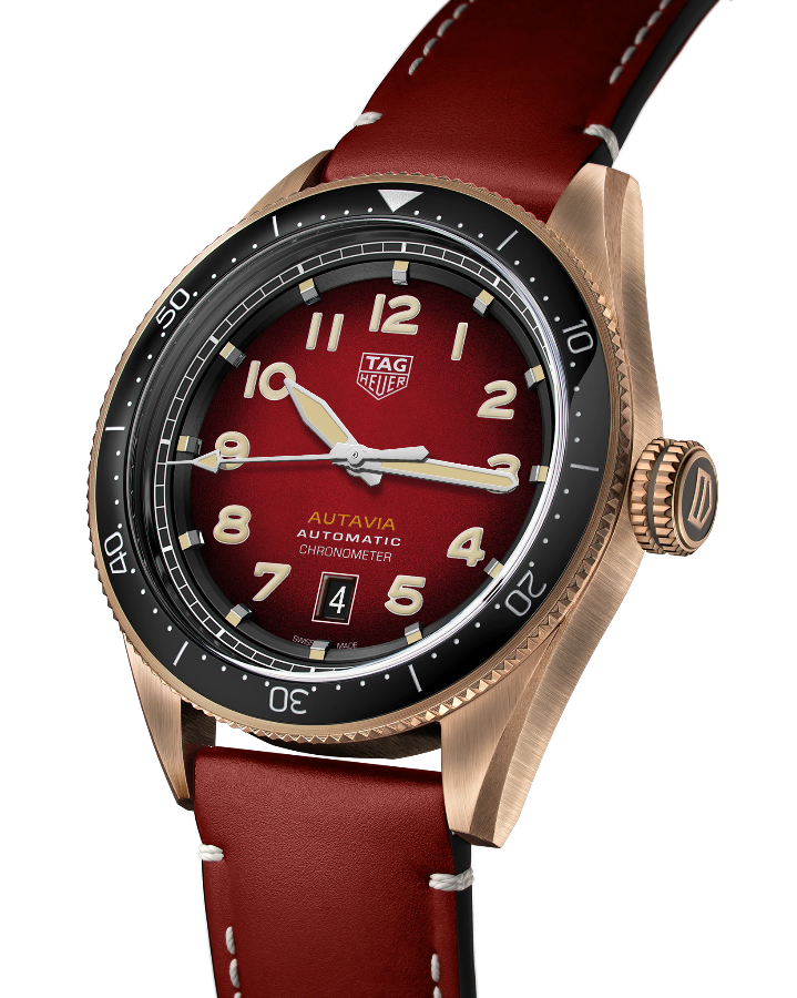 Швейцарские мужские часы TAG Heuer Autavia WBE5192.FC8300, механический механизм (автоматический калибр) с высокой точностью. Сапфировое стекло устойчивое к появлению царапин, обладающее высокой прозрачностью. Класс водозащиты: 100 метров, позволит плавать, нырять и заниматься другими водными видами спорта. Корпус часов изготовлен из бронзы, золотого цвета. Эти сертифицированные COSC часы из бронзы Autavia - идеальный выбор для исследователей, для которых часы - это жизнь. 3-стрелочная модель отличается закругленным корпусом первого поколения Autavia и скошенными креплениями в стиле 1960-х годов. Вращающийся в обоих направлениях безель из черной керамики с 60-минутной шкалой подчеркивает спортивный облик часов. Сменный ремешок создан для приключений. Часы, вдохновлённые приборной панелью пилота, оснащены привлекательными элементами, уходящими корнями в историю этой линейки.