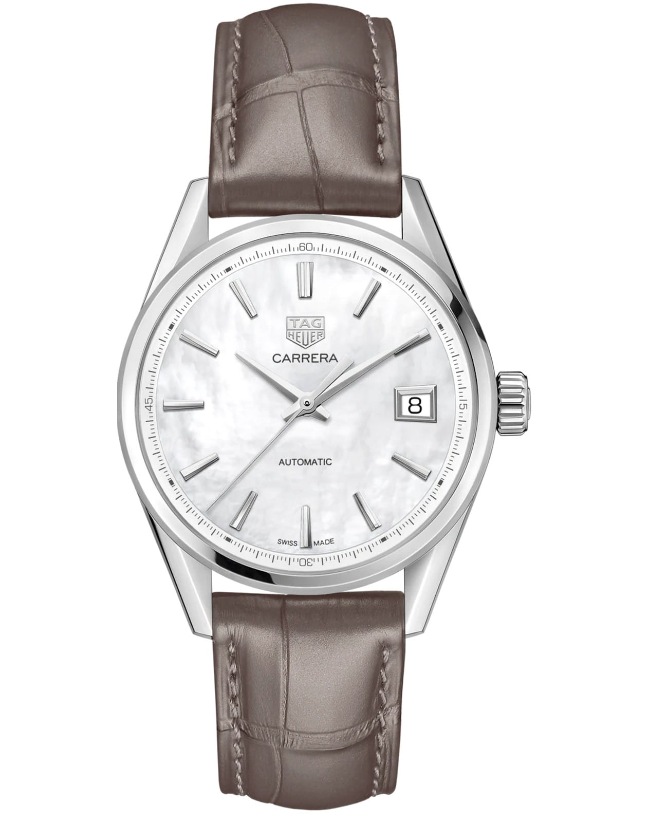 В этих элегантных часах TAG Heuer Carrera Lady с полированным корпусом из нержавеющей стали и перламутровым циферблатом установлен автоматический механизм Calibre 5. Его запас хода составляет 38 часов. TAG Heuer Carrera Lady WBK2311.FC8258, механический механизм (автоматический калибр) с высокой точностью. Сапфировое стекло устойчивое к появлению царапин, обладающее высокой прозрачностью. Класс водозащиты: 100 метров, позволит плавать, нырять и заниматься другими водными видами спорта. Корпус часов изготовлен из стали, серебристого цвета.