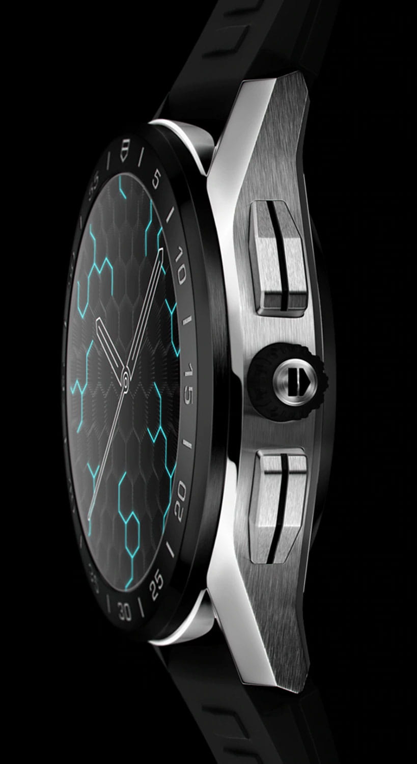 Новое поколение смарт-часов от TAG Heuer - это образец мастерства бренда, воплощающего в себе передовые технологии двадцать первого века. Эти часы – идеальный выбор для ценителей часового искусства и приверженцев активного образа жизни. Connected. Унисекс. Смарт-часы работают на базе четырехъядерного процессора Qualcomm® Snapdragon™ Wear 3100 и оснащены операционной системой Wear OS от Google. Совместимы с ОС Android 6.0+ (исключая версию Go) и iOS 10.0+. Встроенная система бесконтактной оплаты NFC (Google Pay). Микрофон. Голосовой помощник Google Assistant и Google Translate. Возможность установка приложений из Google Play. Возможность управления функциями телефона как через сенсорный дисплей, так и через функциональные кнопки и заводную головку. Подключение к интернету через Wi-Fi или с помощью интернета мобильного телефона. Синхронизация со смартфоном через Bluetooth. Поддержка спортивных онлайн-сообществ. Совместимость с приложением TAG Heuer Sports. Настраиваемые экраны: скелетонизированный циферблат мануфактурного механизма Heuer 02, цифровой механизм Carrera Heuer 01, анимация Orbital на основе уникальной нейросетевой модели, а также дисплей, вдохновленный фирменной спиралью баланса из углеродного композита на основе гексагональных нанотрубок. Настраиваемая подсветка (яркость/режим). Цветной сенсорный дисплей на органических светодиодах (OLED) размером 1,39'' и разрешением 454х454 пикселей (326 ppi). Второй часовой пояс. SPLIT-хронограф. Сервисы навигации GPS, GLONASS, BeiDou и QZSS. Пульсометр, компас, акселерометр, гироскоп, секундомер, таймер и будильник. Мониторинг количества израсходованных калорий. Вибро-оповещение. Перезаряжаемый аккумулятор 430мАч, которого хватает на сутки, включая часовую тренировку. Время полной подзарядки 1,5 часа. Керамический безель. Круглый корпус. Задняя крышка корпуса с винтовым креплением. Каучуковый ремешок с системой быстрой замены. В комплект входят магнитное зарядное устройство аккумулятора и специальный дорожный чехол.