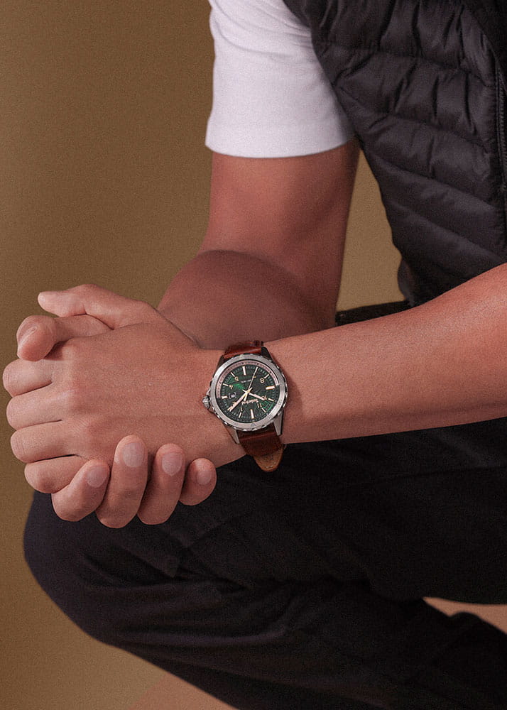 Мужские кварцевые часы Timberland — это стильный и надежный аксессуар. Корпус диаметром 45 мм выполнен из нержавеющей стали. БезельБезельВнешний ободок, закрепляющий стекло. В спортивных часах так называется поворотное кольцо с делениями на циферблате, выполняет роль таймера – замеряет отрезки времени на шкале. Неподвижный безель – элемент декора. Однонаправленно вращающийся безель на дайверских часах позволяет фиксировать моменты погружения и выныривания на поверхность. рифлёный, с минутной шкалой. Циферблат зелёного цвета оформлен арабскими цифрами, штрихами и стрелками. Окошко даты расположено в положении 3 часов. Циферблат защищён минеральным стекломМинеральное стеклоМинеральное стекло представляет собой искусственно выращенный минерал кварца. Такое стекло отличается особой устойчивостью к повреждениям и царапинам. Уступает по некоторым качествам сапфировому стеклу.. Часы оснащены коричневым кожаным ремешком из премиальной натуральной кожи на классической пряжке с системой быстрой замены. Водонепроницаемость 50 м позволяет использовать часы в повседневных условиях. Идеальный выбор для тех, кто ценит американское качество и устойчивый стиль.