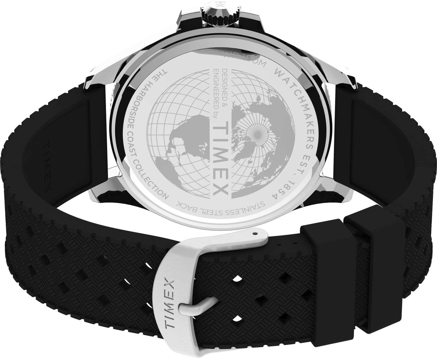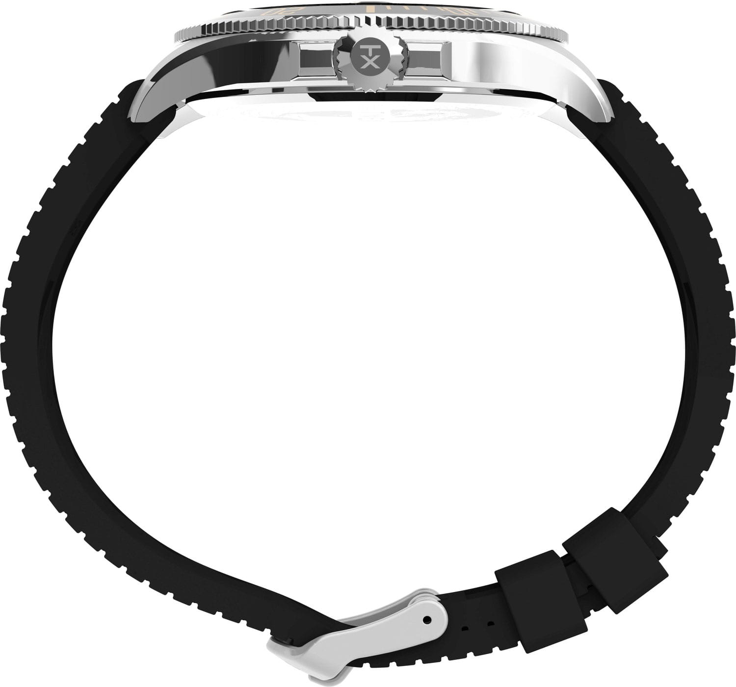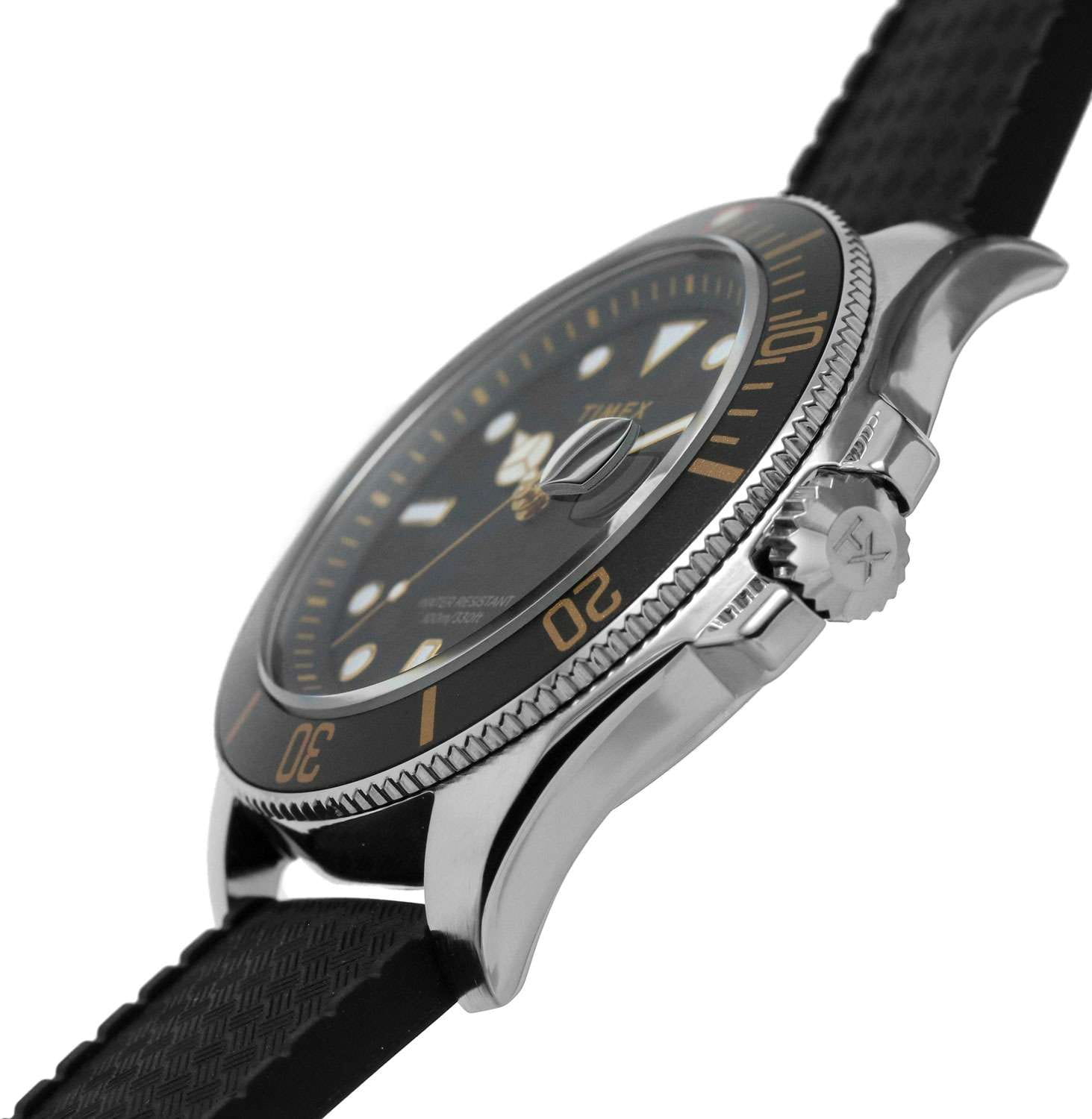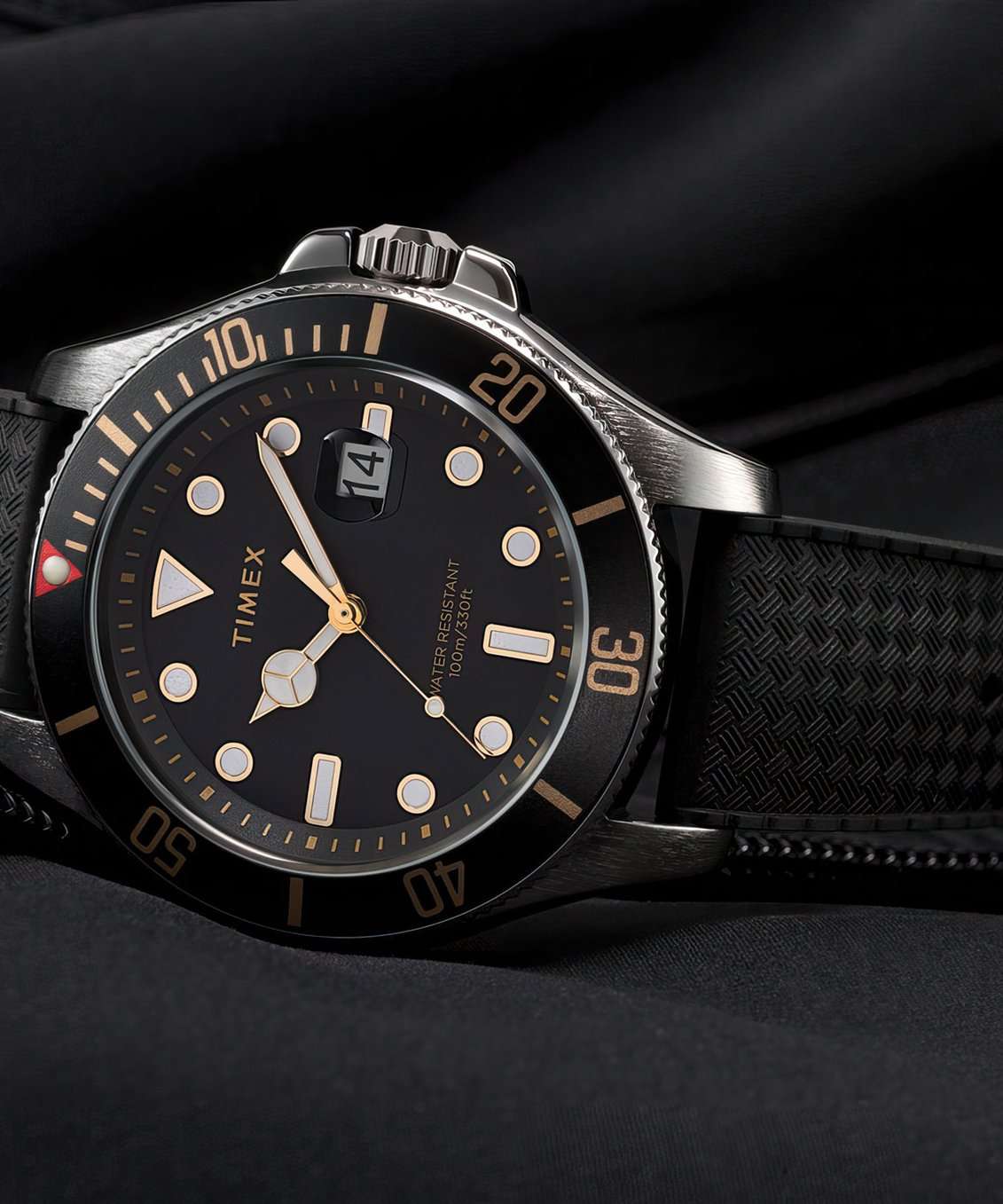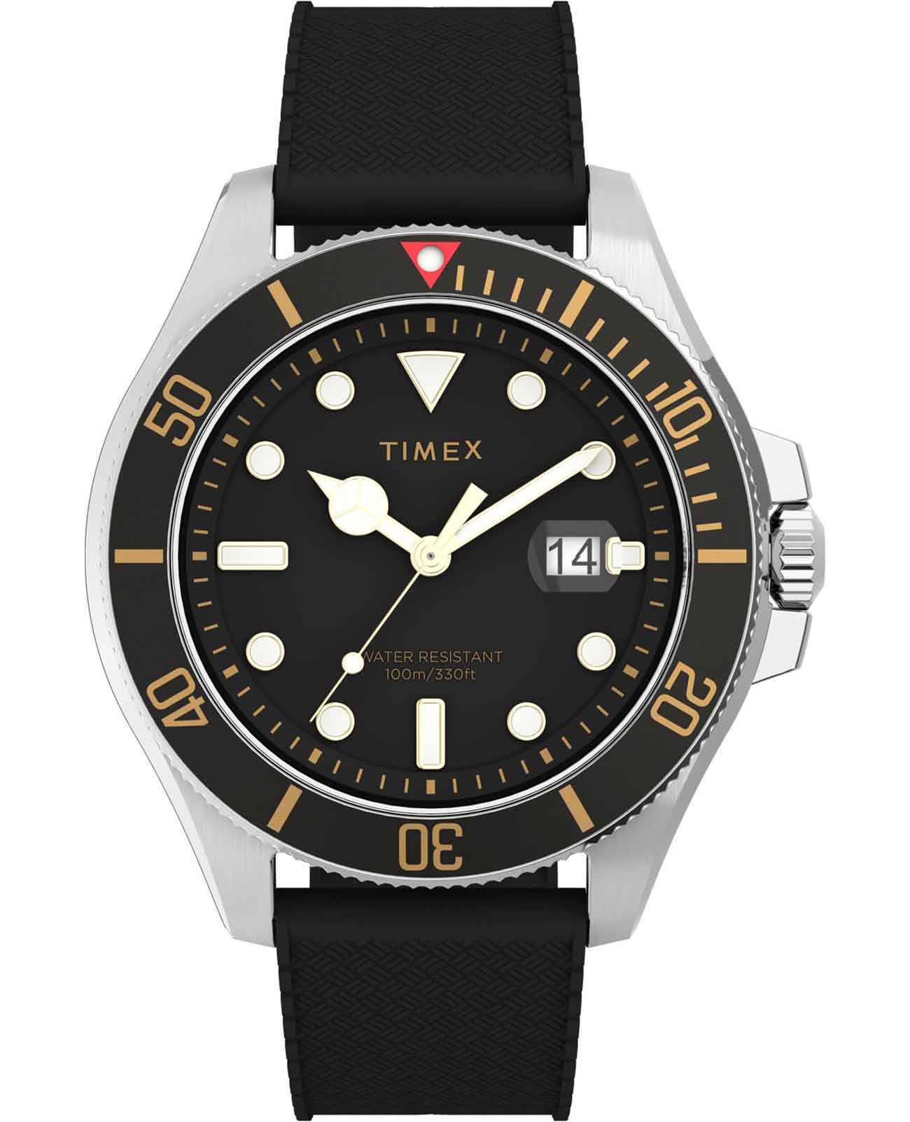Timex TW2V27200 — это надежные и стильные часы, которые идеально подойдут для тех, кто ценит сочетание функциональности и современного дизайна. Изготовленные в США, эти часы оснащены кварцевым механизмом, гарантирующим точность и долговечность. Корпус выполнен из латуни с PVDPVDУльтратонкое покрытие наносится в технике вакуумного напыления, сочетает в себе нитрид титана особой прочности со слоем золота или оксида хрома. Несёт в себе декоративную или защитную функцию. покрытием, придающим ему устойчивость к износу и особую привлекательность. Черный циферблат с четкими метками в виде штрихов и точек обеспечивает легкость в считывании времени. Метка на 12 часах выполнена в виде треугольника. Стрелки и метки с люминесцентным покрытиемЛюминесцентное покрытиеПозволяет считывать показания времени в темноте. Производители наносят на стрелки, часовые индексы, безель или поверхность циферблата светонакопительный состав, дающий холодное свечение. обеспечивают отличную видимость в темноте после небольшой экспозиции на свету. Вращающийся безельБезельВнешний ободок, закрепляющий стекло. В спортивных часах так называется поворотное кольцо с делениями на циферблате, выполняет роль таймера – замеряет отрезки времени на шкале. Неподвижный безель – элемент декора. Однонаправленно вращающийся безель на дайверских часах позволяет фиксировать моменты погружения и выныривания на поверхность. с минутной шкалой добавляет функциональности и стиля, а рифленая заводная головка с защитой подчеркивает внимание к деталям. Часы имеют водозащиту 100WR, что позволяет использовать их при плавании и других водных активностях. Минеральное стеклоМинеральное стеклоМинеральное стекло представляет собой искусственно выращенный минерал кварца. Такое стекло отличается особой устойчивостью к повреждениям и царапинам. Уступает по некоторым качествам сапфировому стеклу. защищает циферблат от царапин, а удобный силиконовый ремешок с классической застежкой обеспечивает комфортное ношение. Особенностью модели является наличие календаря с окошком даты, расположенным в положении 3 часа и снабженным увеличительным стеклом для удобства чтения. Диаметр корпуса составляет 43 мм, а ширина ремешка — 20 мм, что делает их идеальным выбором для активного образа жизни. Задняя крышка часов украшена изысканной гравировкой, добавляя нотку эксклюзивности.