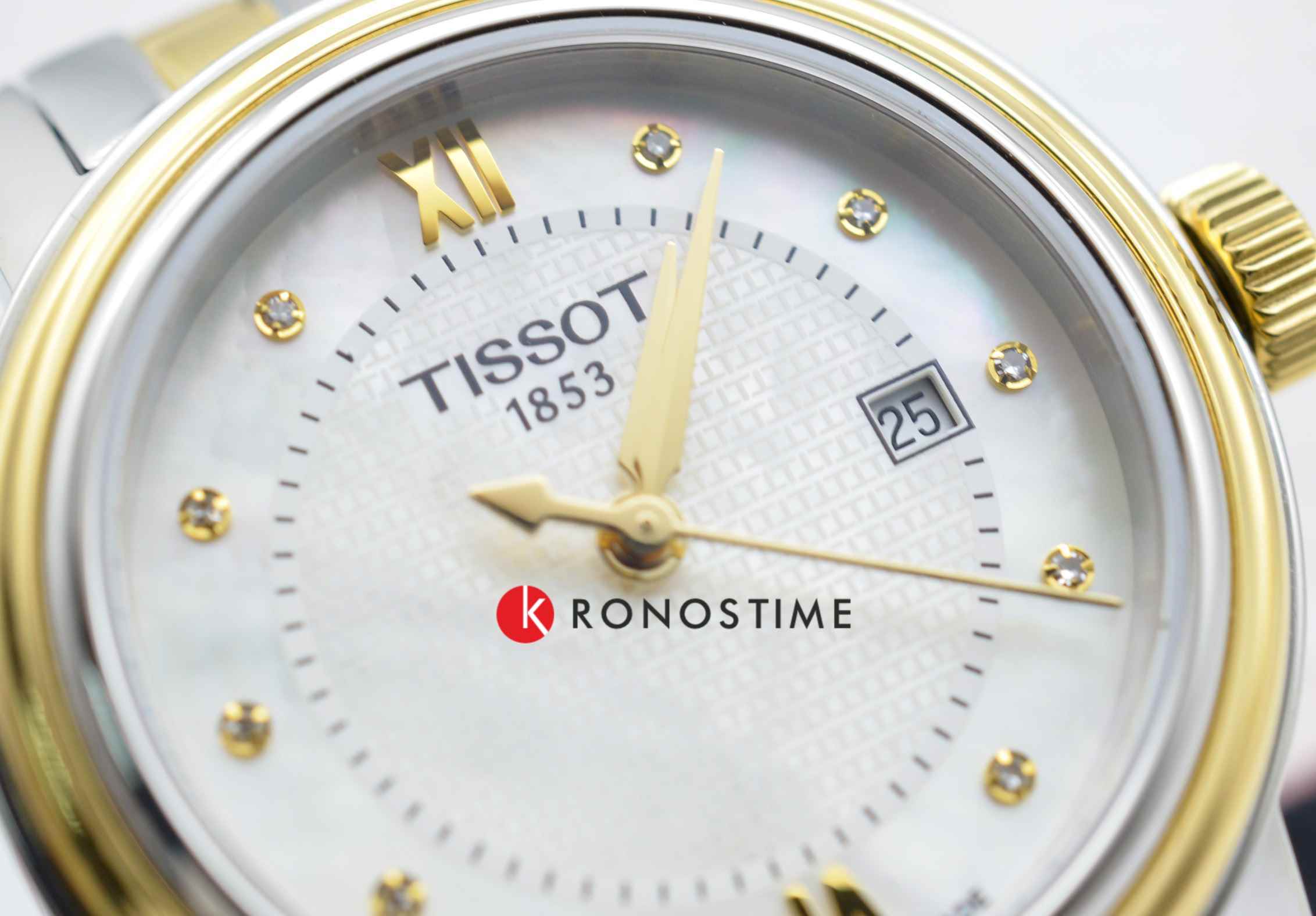 Уникальностью модели является характерный узор в виде мельчайших букв «Т», расположенных в шахматном порядке. По окружности циферблат имеет привлекательную вставку из перламутра, винтажный тон придают римские цифры. Он инкрустирован 10 роскошными бриллиантами в 0,02 карат. Двухцветная модель с золотистым PVD-покрытиемPVDУльтратонкое покрытие наносится в технике вакуумного напыления, сочетает в себе нитрид титана особой прочности со слоем золота или оксида хрома. Несёт в себе декоративную или защитную функцию. оснащена кварцевым механизмом ETA F03.111 с высокой точностью хода. Нержавеющая сталь 316L. Водостойкость 50 метров. Сапфировое стекло. . Окошко даты. Габариты: 29 x 29 x 8,2 мм.