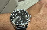 Модель сочетает в себе классические элементы и динамичные черты. Аксессуар относится к числу самых больших хронографов - диаметр корпуса составляет 45 мм. Элегантный ремешок выполнен из натуральной кожи, он надёжно крепится на руке, застёжка препятствует случайному расстёгиванию. Кварцевый механизм ETA G10.212. Сапфировое стекло. Водонепроницаемость до 10 бар. Габариты: 45 x 45 x 11 мм.
