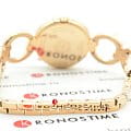 Наручные часы в классическом стиле отличаются лаконичным исполнением, но отдельные детали добавляют роскоши. Модель инкрустирована 12 бриллиантами в 0,0156 карат, расположенными по окружности циферблата. Оригинальный браслет с кольцевидными звеньями и корпус имеют PVD-покрытиеPVDУльтратонкое покрытие наносится в технике вакуумного напыления, сочетает в себе нитрид титана особой прочности со слоем золота или оксида хрома. Несёт в себе декоративную или защитную функцию. оттенка розового золота. Кварцевый калибр ETA F03.111 с 3 камнями. Водостойкость 5 бар. Круглое окошко даты. Габариты: 30 x 30 x 6,35 мм.