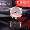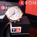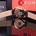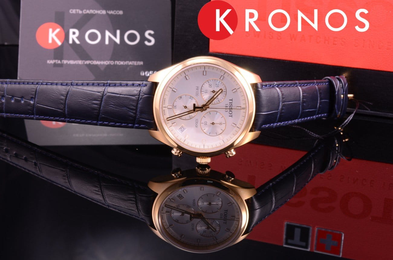 Синий цвет ремешка из натуральной кожи прекрасно гармонирует с розовато-золотистым PVD-покрытиемPVDУльтратонкое покрытие наносится в технике вакуумного напыления, сочетает в себе нитрид титана особой прочности со слоем золота или оксида хрома. Несёт в себе декоративную или защитную функцию. корпуса. Минималистичный циферблат дополнен счётчиками хронографаХронографФункция позволяет измерять отрезки времени с особой точностью: часы, минуты, секунды. Верным признаком хронографа является наличие на циферблате 3 дополнительных окошек-счётчиков., что добавляет аксессуару элементы спортивного дизайна. Запоминающийся внешний вид. Кварцевый калибр ETA G10.211. Прочное сапфировое стекло. Люминесцентная подсветкаЛюминесцентное покрытиеПозволяет считывать показания времени в темноте. Производители наносят на стрелки, часовые индексы, безель или поверхность циферблата светонакопительный состав, дающий холодное свечение.. Функции: хронограф, секундомер, календарь. Габариты: 41 x 41 x 10,7 мм.